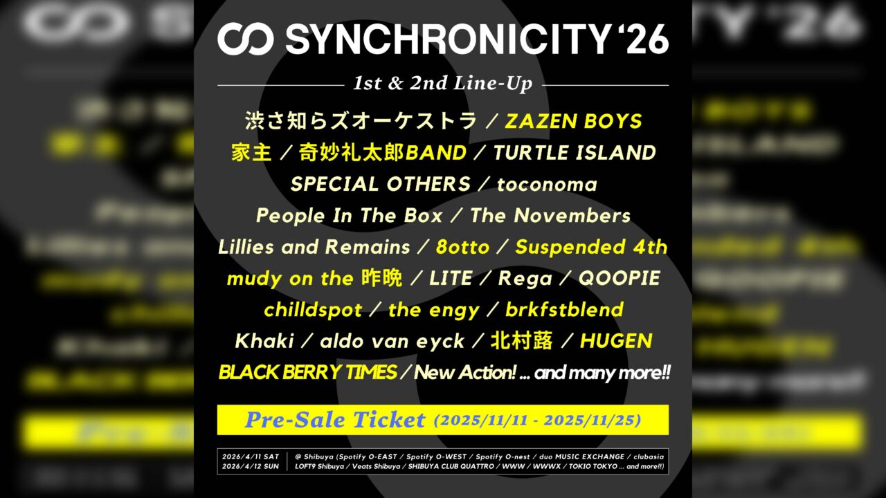 『SYNCHRONICITY’25』第2弾でZAZEN BOYS、家主、奇妙礼太郎BAND、北村蕗ら12組