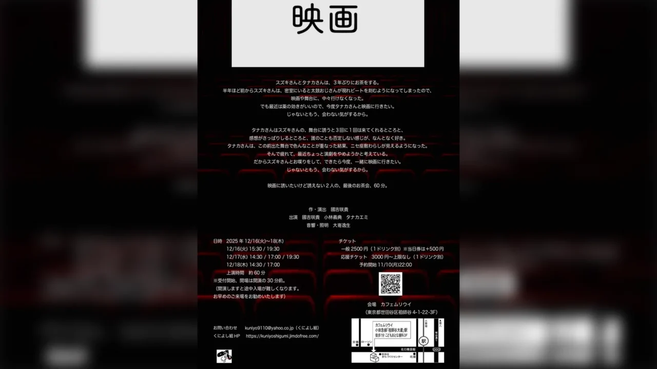 映画に誘いたいけど誘えない2人の最後のお茶会を描く、くによし組の舞台『映画』