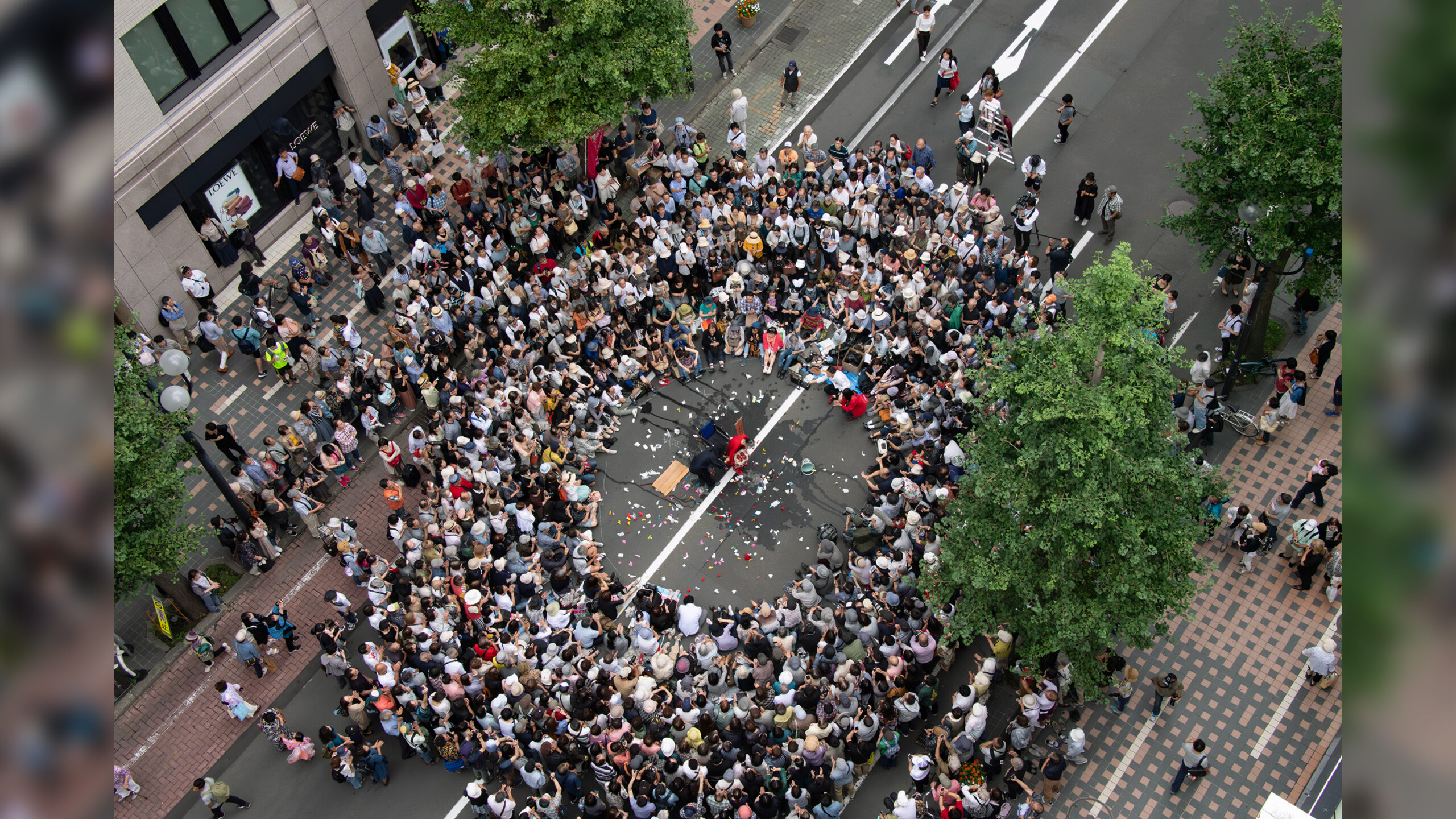 路上には、自由と邪魔が同居しています。かつて日本には、公界と呼ばれる一定の制度や権力の及ばない自由な空間が存在していました。寺社の門前や宿場町に見られた領域は、移動する人々や芸能を受け入れ、 文化や交流を育む装置でもありました。一方で路上は、単に自由や解放の象徴だけではなく、排除の論理によって居心地の悪さや不安定さも抱えています。 1986年に赤瀬川原平や藤森照信らにより結成された 「路上観察学会」は、変わりゆく都市のなかで、路上を観察し、読み替える目を提示しました。それから40 年を経た今年、本展では、現代美術から歴史的資料、テレビゲームや銭湯、大道芸までをも紹介しながら、 路上は誰のものか?をキーワードに、路上の公共性を 探ります。批評とユーモアの喧騒に溢れた、路上の芸術に出会いにきてください。