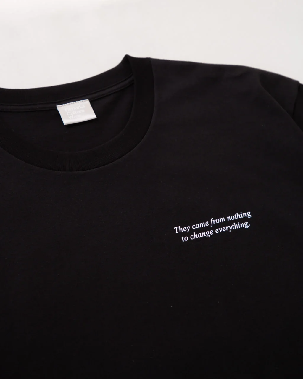 今回のラインナップは、作品の象徴的なロゴを配したモデルと、劇中の印象的なシーンをバックプリントに施したモデルの2種類。フロントには映画のキャッチコピーである「They came from nothing to change everything.」のタイポグラフィが刻まれている。当時の熱量を現代のストリートウェアとして再解釈し、日常使いしやすい洗練されたデザインに落とし込まれた。