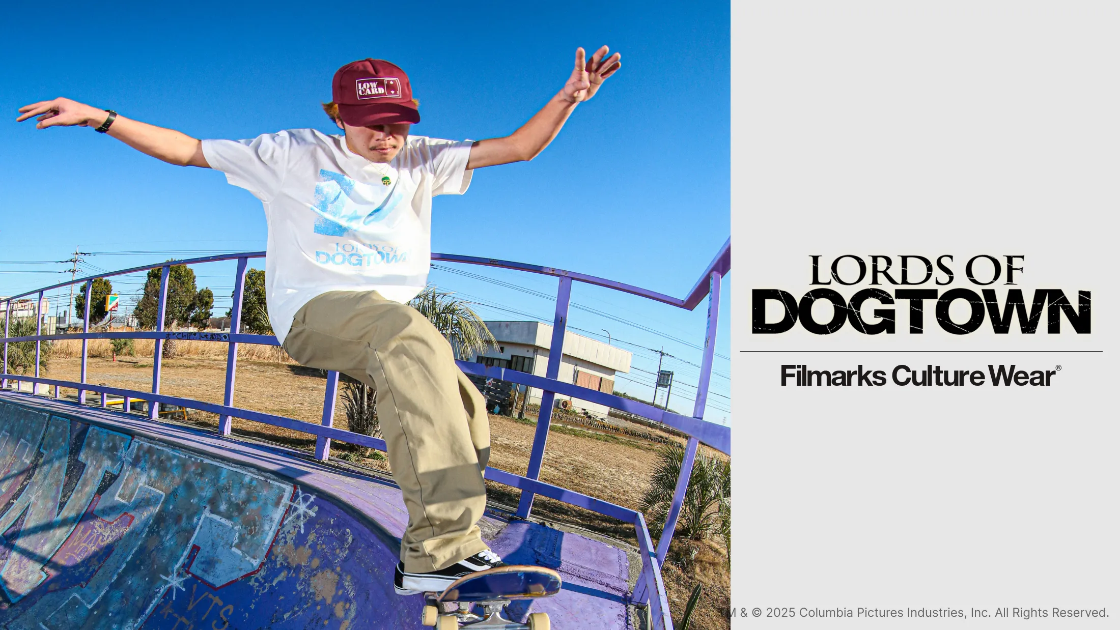 1970年代カリフォルニアで伝説となったスケートボードチーム「Z-Boys」の姿を描いた青春映画の不朽の名作『ロード・オブ・ドッグタウン』。2005年の日本公開から20周年を迎えることを記念し、国内最大級の映画レビューサービス「Filmarks」が手がけるプロジェクト・Filmarks Culture Wear(FCW)から限定Tシャツが発売される。
