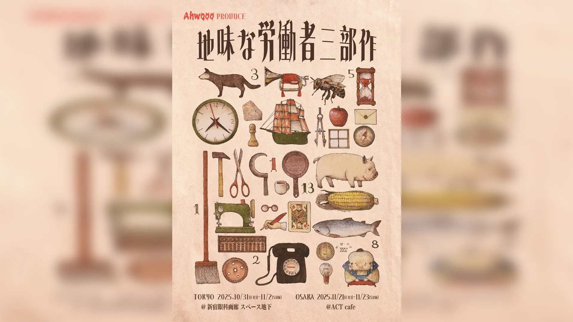 Ahwoooの舞台『地味な労働者三部作(東京 ver.)』が10月31日(金)から11月2日(日)まで、東京・新宿眼科画廊 スペース地下で上演される。