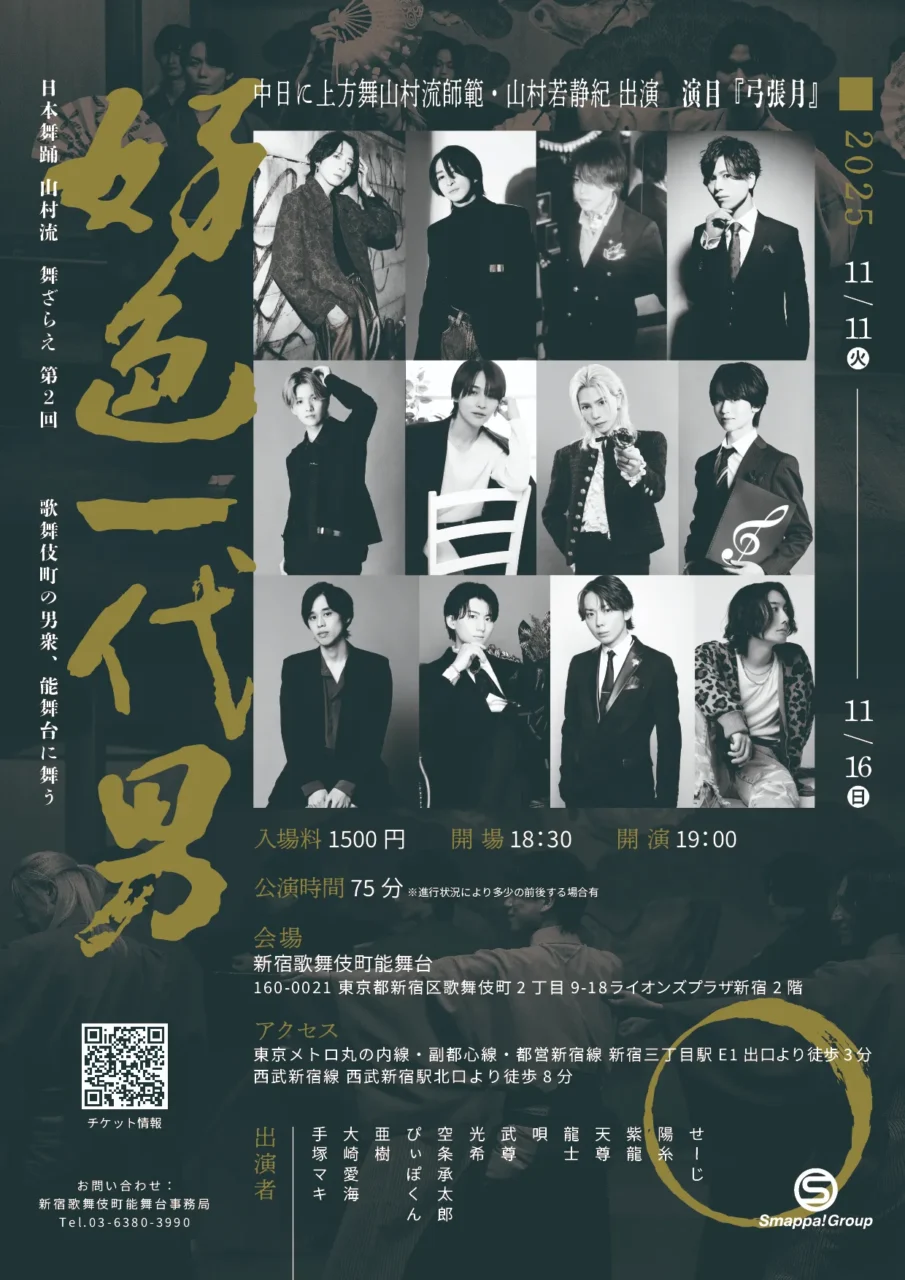 ホストたちは、プレイボーイの生き様を描く井原西鶴の浮世草子『好色一代男』に名を借りた日本舞踊グループ「好色一代男」として活動。2024年6月から約1年半の間、上方舞山村流師範・山村若静紀による指導のもとで稽古に励み、2025年春には第1回公演を開催した。同公演では新たなメンバーも加わり、さらに進化した舞を見せる。中日である11月13日(木)は師範の山村も出演し、『弓張月』を披露する。