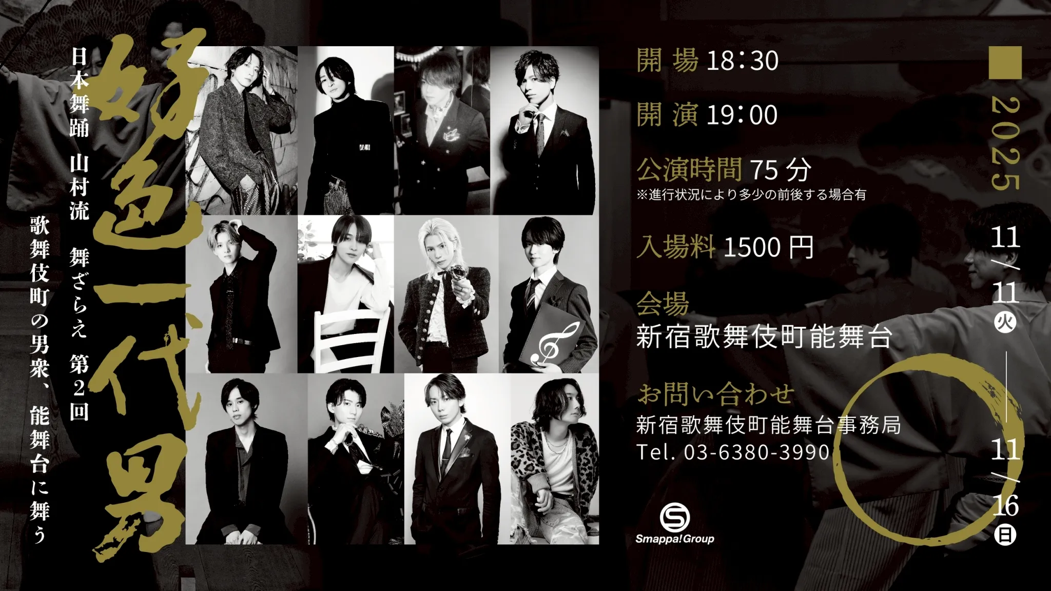 Smappa!Groupのホストが日本舞踊を披露する『「好色一代男」 日本舞踊 山村流 舞ざらえ 第2回』が、11月11日(火)~11月16日(日)の6日間にわたって開催される。