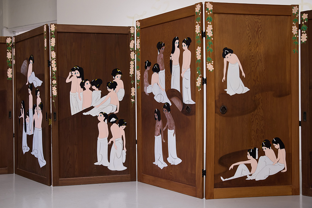 墨⽥区内に残る歴史的建造物を訪ね、現代のアーティストが独⾃の視点で作品を展⽰します。琳派な様々な日本の美を継承しつつ、現代性を融合した新しい美人画を板や貝殻等に描く山口藍などが、すみだの場の魅力を顕在化させます。