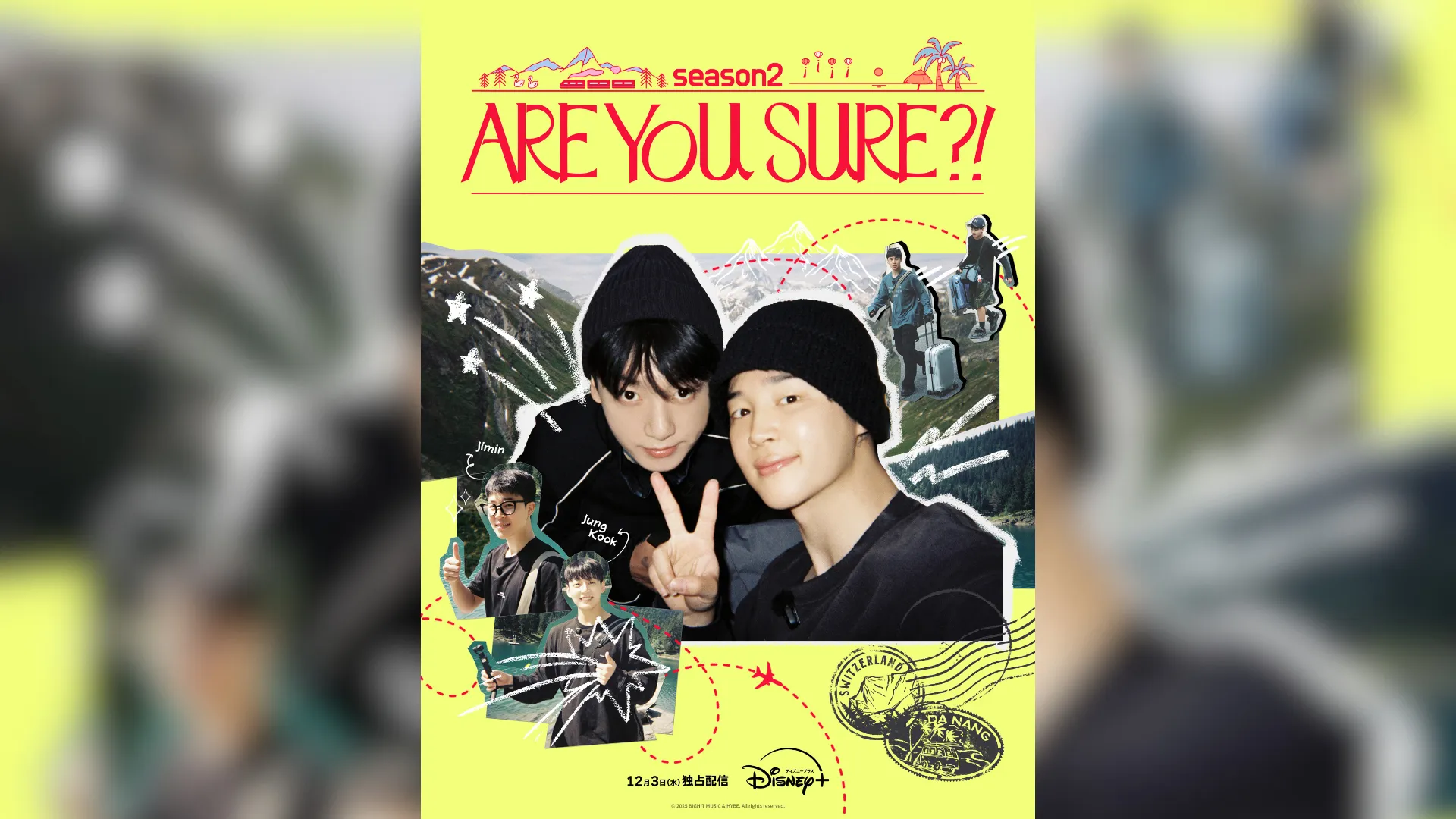 BTSのジミン、ジョングクが休暇を過ごす姿を追ったトラベルバラエティ『Are You Sure?!』シーズン2が12月3日(水)から配信開始する。このたび本予告と新たなビジュアルが発表された。