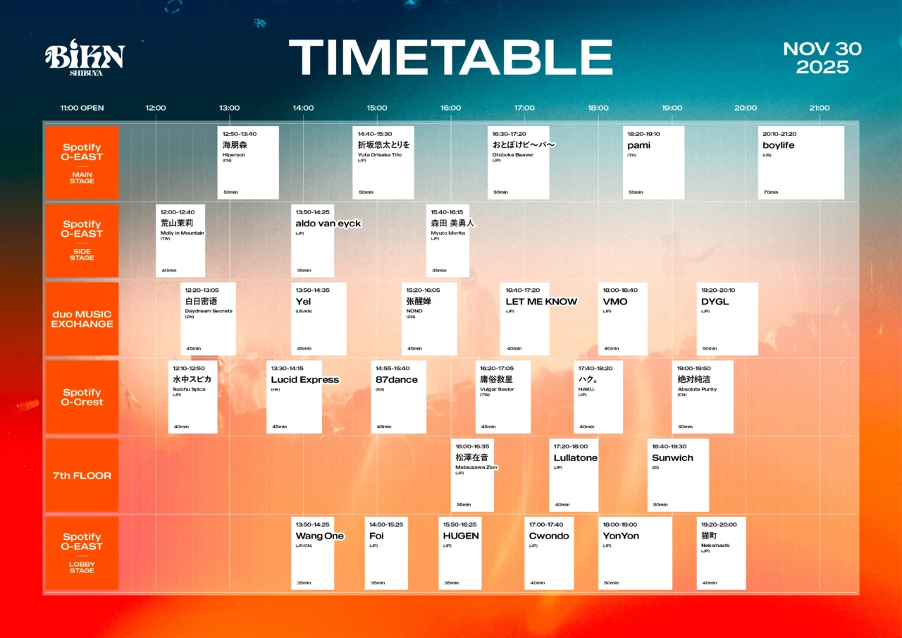 11⽉30⽇(⽇)に東京・渋谷で開催される『BiKN shibuya 2025』の最終ラインナップとタイムテーブルが発表された。