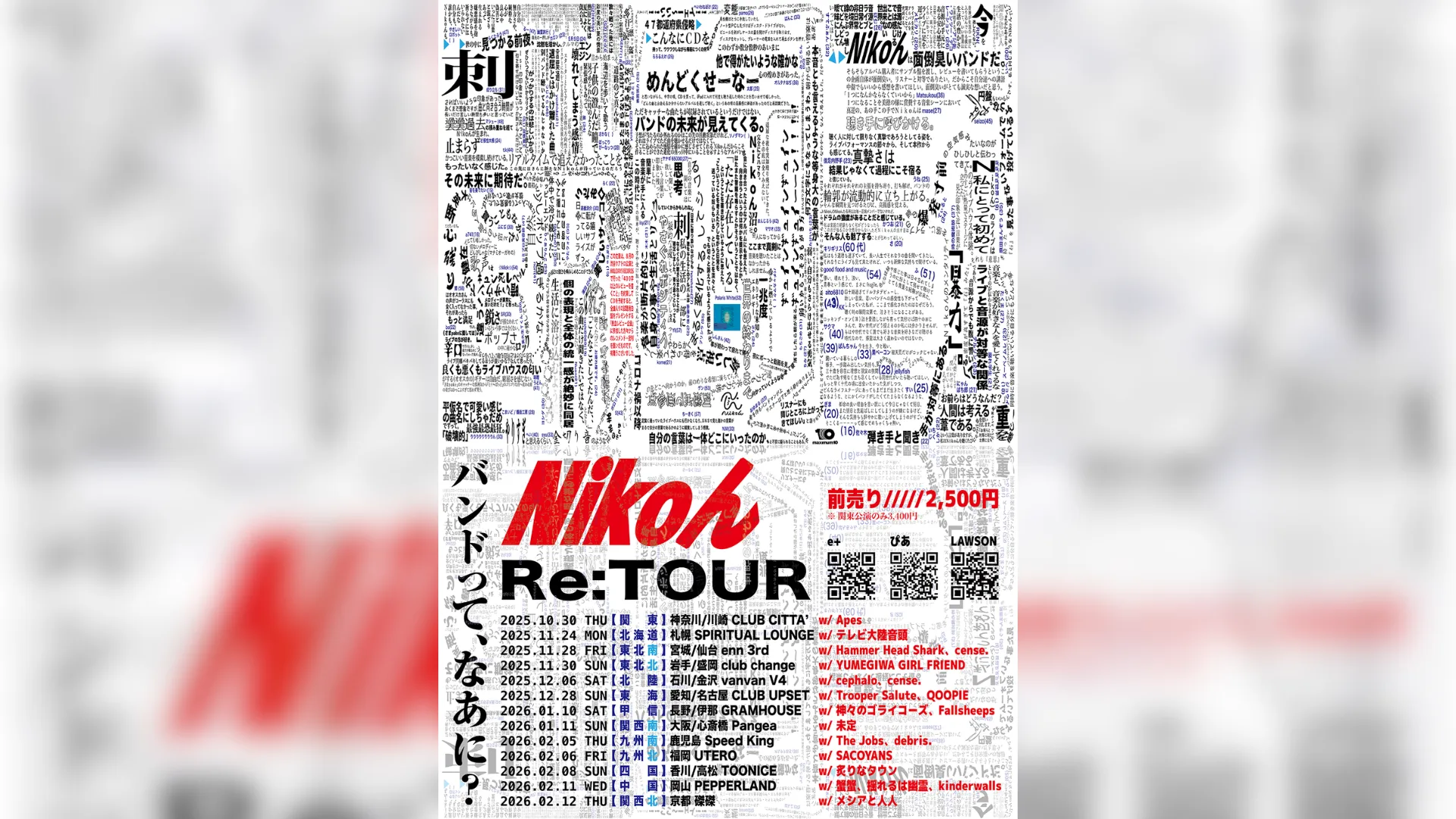 Nikoんが11月24日(月・祝)から開催する全国ツアー『Re:TOUR』のゲストバンドが発表された。