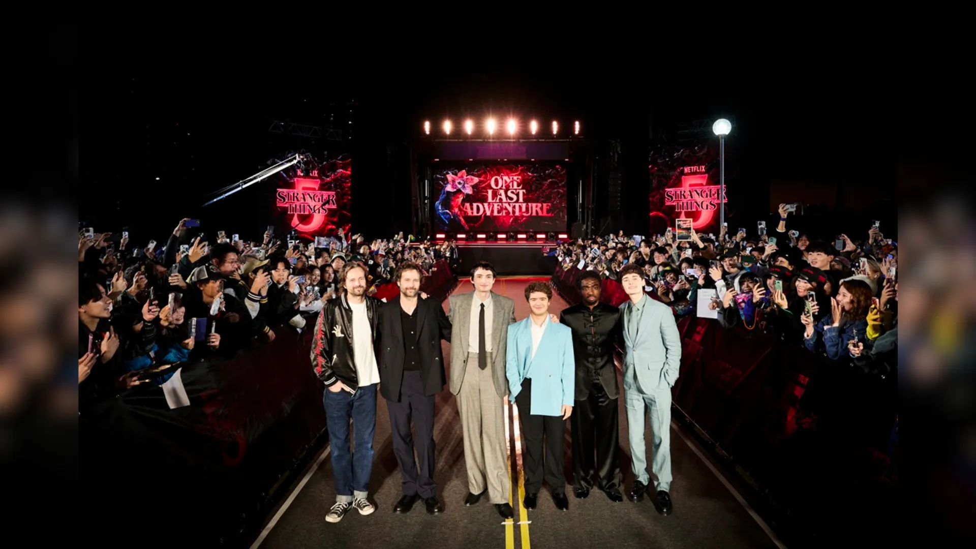 ステージイベントが始まり、作中で少年たちが常に乗っていたBMXやダンスなどのパフォーマンスが披露される中、ダファー兄弟、フィン、ゲイテン、ケイレブ、ノアが登壇。ファンの目の前に敷かれたカーペットを歩きファンサービスを実施した。東京の地で最終シーズンを迎える気持ちを聞かれると、フィンは「最高です! 各国を回るツアーを1ヶ月ほどしているのですが、最後に素晴らしい東京に来られて嬉しいです!」と語り、ゲイテンは「東京は最高で、ご褒美のような気分になります。おもてなしも素晴らしいですし、できるならもっと長く過ごしたいです。特別な日になりました! ありがとうございます!」と話した。ケイレブは「日本や東京の素晴らしいところは清潔なところです。もう住んでもいいくらいに思っています(笑)」と明かし、ノアは「日本が大好きなので来られて嬉しく思います。色々な国に行きましたが、中でも日本は大好きです」とそれぞれの想いを語った。