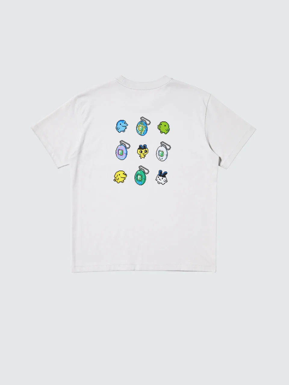 今回のコラボレーションで発売されるUTは、初代「たまごっち」のピクセルアートからインスピレーションを受けてデザインされたウィメンズTシャツ4型。「くちぱっち」が描かれた画面の初代「たまごっち」をフロントに配したものや、「まめっち」を刺繍で表現したものなど、バリエーション豊かなデザインが展開されている。