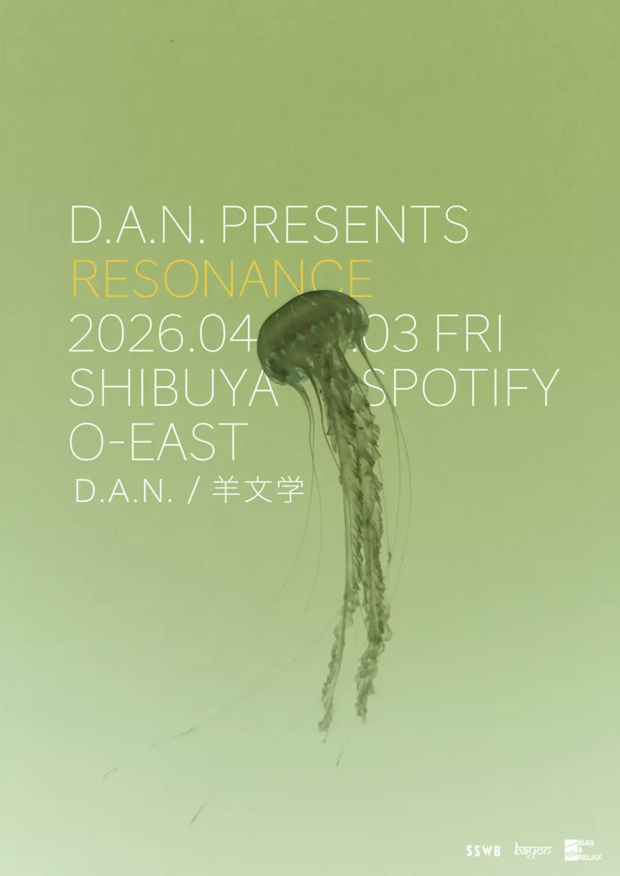 ワンマン公演『Microsound2.0』東京公演を12月19日(金)に開催し、25日(木)に心斎橋のBIG CATでの大阪公演を控えるD.A.N.。『Resonance』では羊文学をゲストアクトに招き、これまで同世代でありながら接点がなかった2組が大きく「共振」(Resonance)しあう公演となっている。公演チケットは1月5日(月)までイープラスでオフィシャル1次先行を受付中。