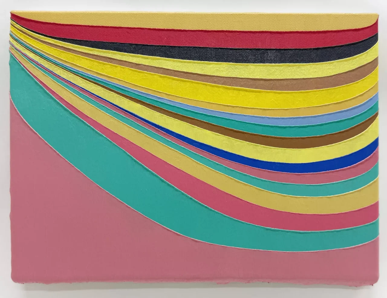 《こわれながらうまれる(間違った言葉)1》 2024年 ビニールシートにアクリル絵具、膠、ウレタン樹脂系接着剤、木 36×50×10 cm