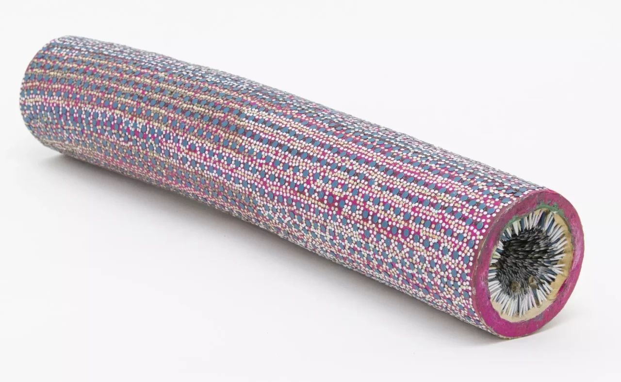 《とうもろこし》2024年 紙管にカラー釘、マーカー、染料、ボンド φ10×49.7 cm
