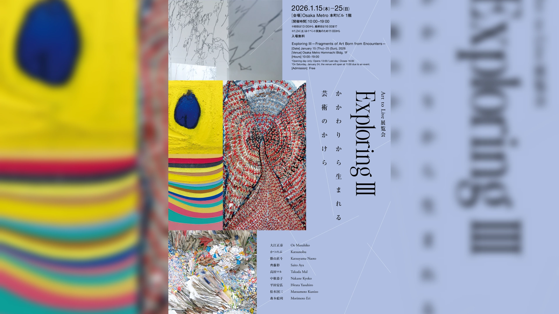 展覧会『Exploring Ⅲ – かかわりから生まれる芸術のかけら -』が、1月15日(木)から25日(日)まで、大阪・中央区のOsaka Metro 本町ビル 1階で開催される。