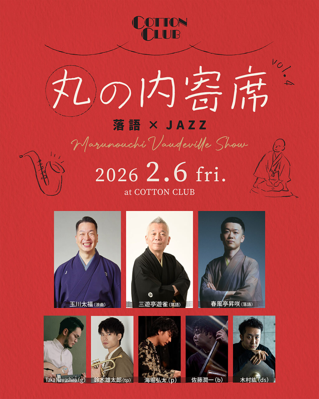 2月6日(金)に東京・丸の内のコットンクラブで、『丸の内寄席 vol.4 落語×JAZZ』が開催される。