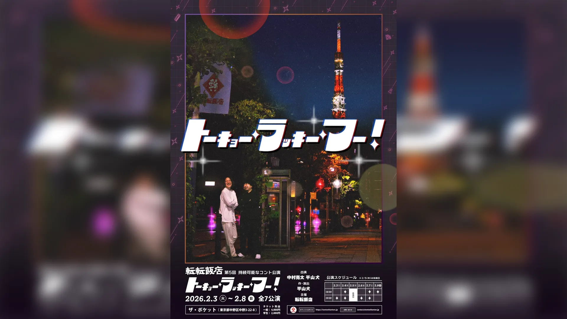 転転飯店のコント公演『トーキョー・ラッキー・フー!』が、2月3日(火)から8日(日)まで、東京・中野のザ・ポケットで上演される。