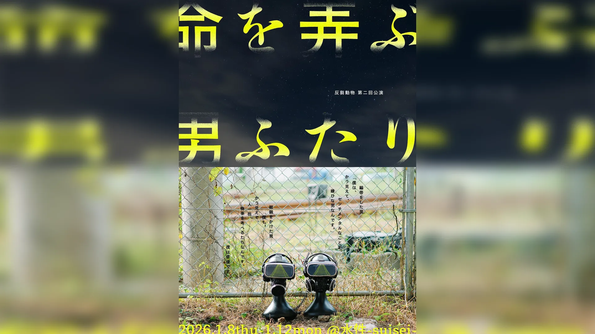 反芻動物の舞台『命を弄ぶ男ふたり』が1月8日(木)から12日(月・祝)まで、東京・中野の水性で上演される。