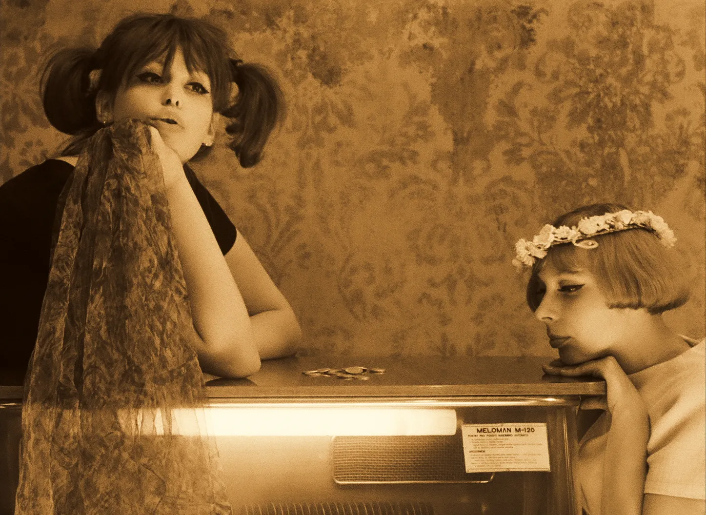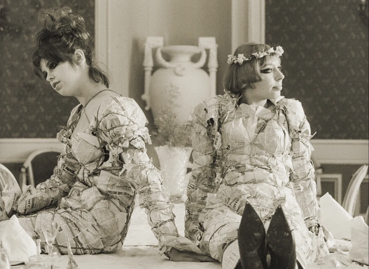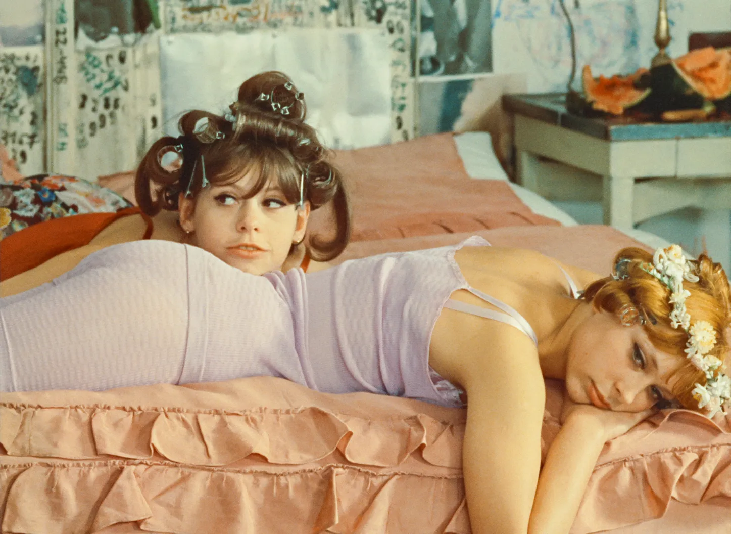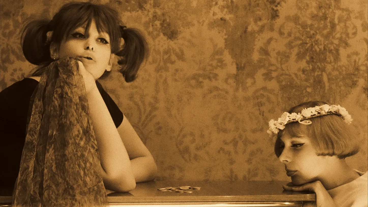マリエ1とマリエ2は、人形の真似をし、姉妹と偽り、男たちを騙しては食事をおごらせ、嘘泣きの後、笑いながら逃げ出す。部屋の中で、牛乳風呂を沸かし、紙を燃やし、ソーセージをあぶって食べる。グラビアを切り抜き、ベッドのシーツを切り、ついにはお互いの身体をちょん切り始め、画面全体がコマ切れになる。色ズレや、カラーリング、実験的な効果音や光学処理、唐突な場面展開など、あらゆる映画的な手法が使われ、衣装や小道具などの美術や音楽のセンスも抜群。60 年代チェコ・ヌーヴェルヴァーグの傑作。