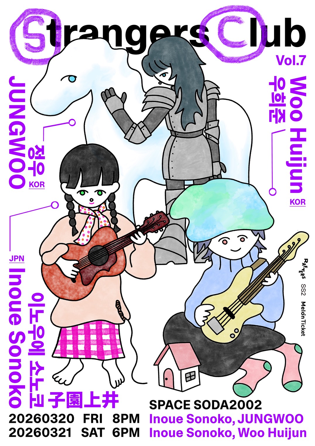 韓国・ソウル公演は、3月20日(金)、21日(土)の2days開催。日韓のアーティストが1組ずつ共演するライブシリーズで、これまでにCwondo、KAGAMI、Summer Eyeらが出演している『Strangers Club』のvol.7として開催され、20日(金)にはシンガーソングライター・JUNGWOO、21日(土)には2025年に活動を開始した韓国インディシーンの新星・Woo Huijunとの共演が予定されている。