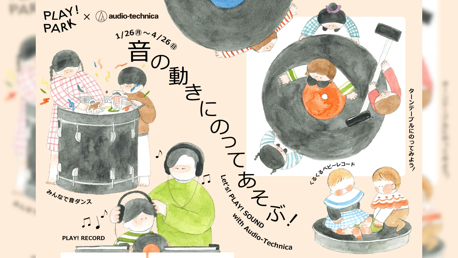 東京・立川の屋内キッズパーク「PLAY! PARK」にて、オーディオテクニカとのコラボレーションイベント『音の動きにのってあそぶ! Let’s! PLAY! SOUND with Audio-Technica』が1月26日(月)から4月26日(日)までの3か月限定で開催される。
