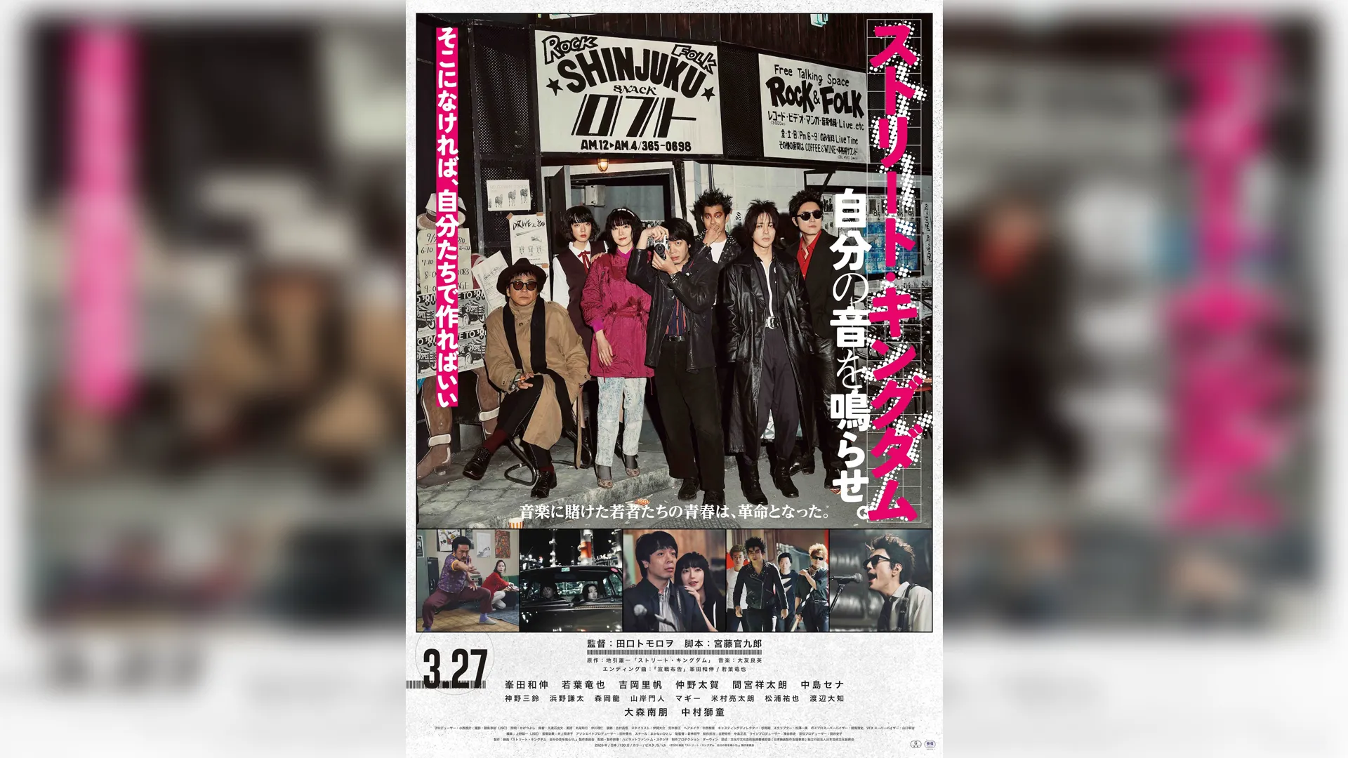 メインビジュアルには、「そこになければ、自分たちで作ればいい」というコピーとともに、新宿ロフトの看板前にキャスト陣が集う姿が写し出されている。本予告映像は、「日本の音楽史を変えたのは、音に賭けた若者たち」というナレーションから始まり、理想と現実の狭間でもがきながらも、自分の音を鳴らそうと疾走する若者たちの姿を、ライブシーンを交えてエネルギッシュに描き出している。