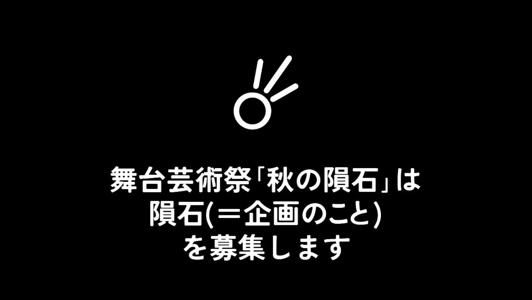本祭は、現在の舞台芸術シーンに新たな変容をもたらしうる表現を「隕石」になぞらえ、未知なる才能や美学を呼び寄せることを目的としている。