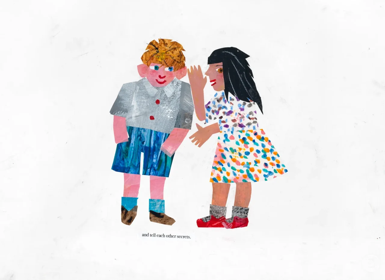 第2章「思い出を絵本に」では、グラフィックデザイナーとしても活躍していたカールが、絵本作家になるまでの人生を辿る。6歳でアメリカからドイツに移住し、友人との別れを経験した自身の思い出が反映された絵本『いちばんのなかよしさん』(2013年)原画は、日本初公開。同じくグラフィックデザイナー出身の絵本作家であるレオ・レオ―ニとの親交についても紹介される。