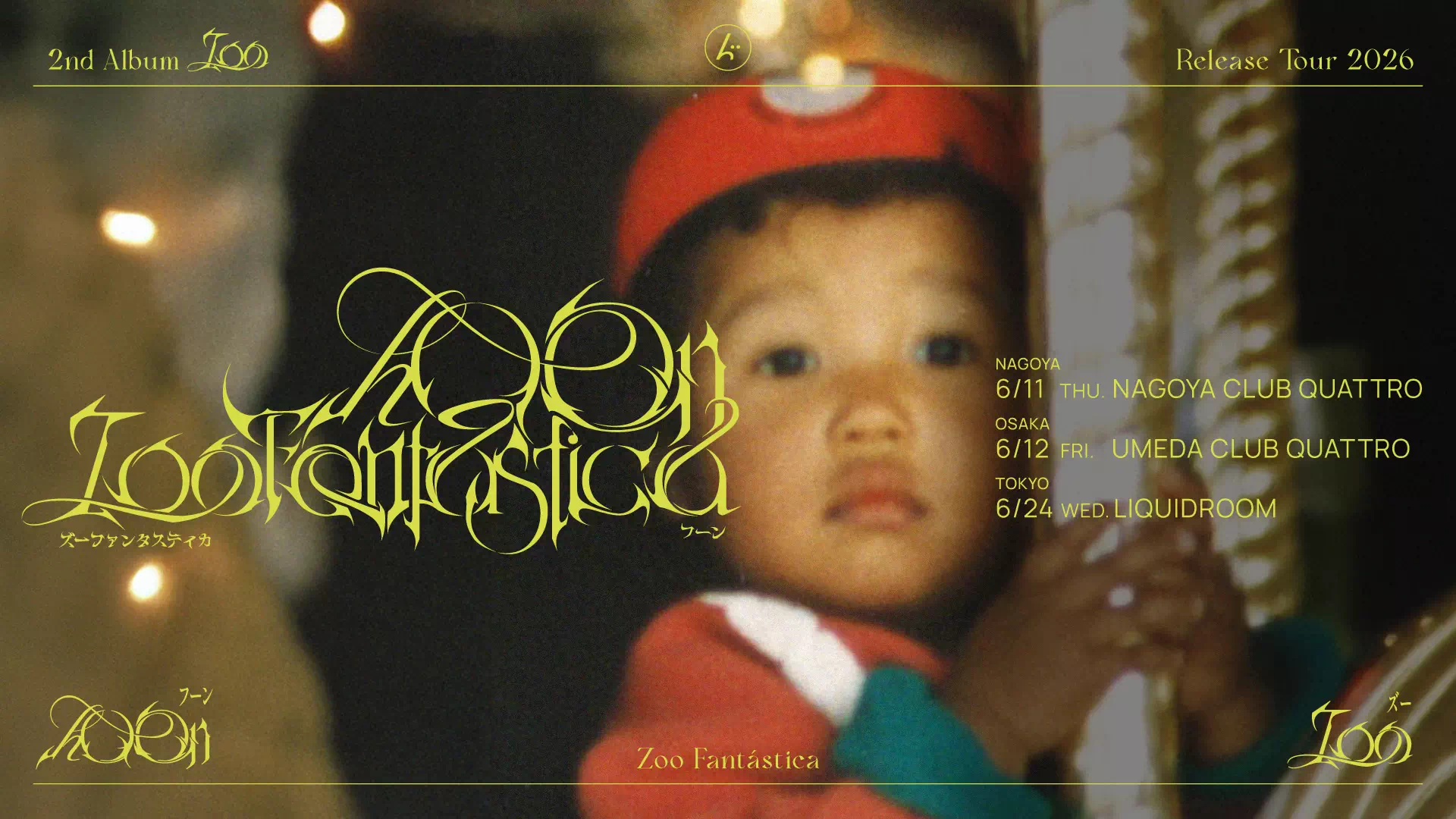 また、アルバムを引っ提げた東名阪リリースツアー『Zoo Fantástica』の開催も決定した。 6月11日(木)の名古屋CLUB QUATTROを皮切りに、大阪・梅田CLUB QUATTRO、東京・恵比寿LIQUIDROOMを巡る。