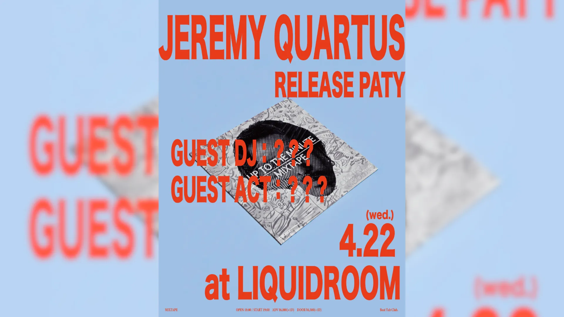 Jeremy Quartusによる1stミックステープのリリースパーティー『“UP TO THE MINUTE MIXTAPE” release party』が、4月22日(水)に恵比寿LIQUIDROOMにて開催される。