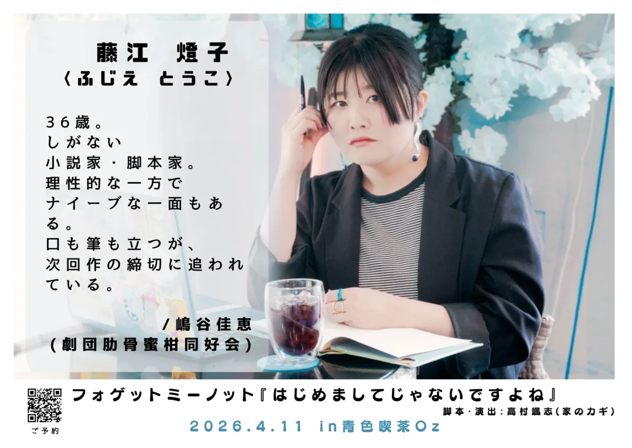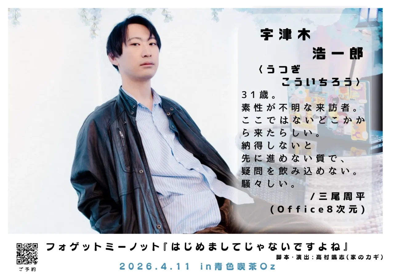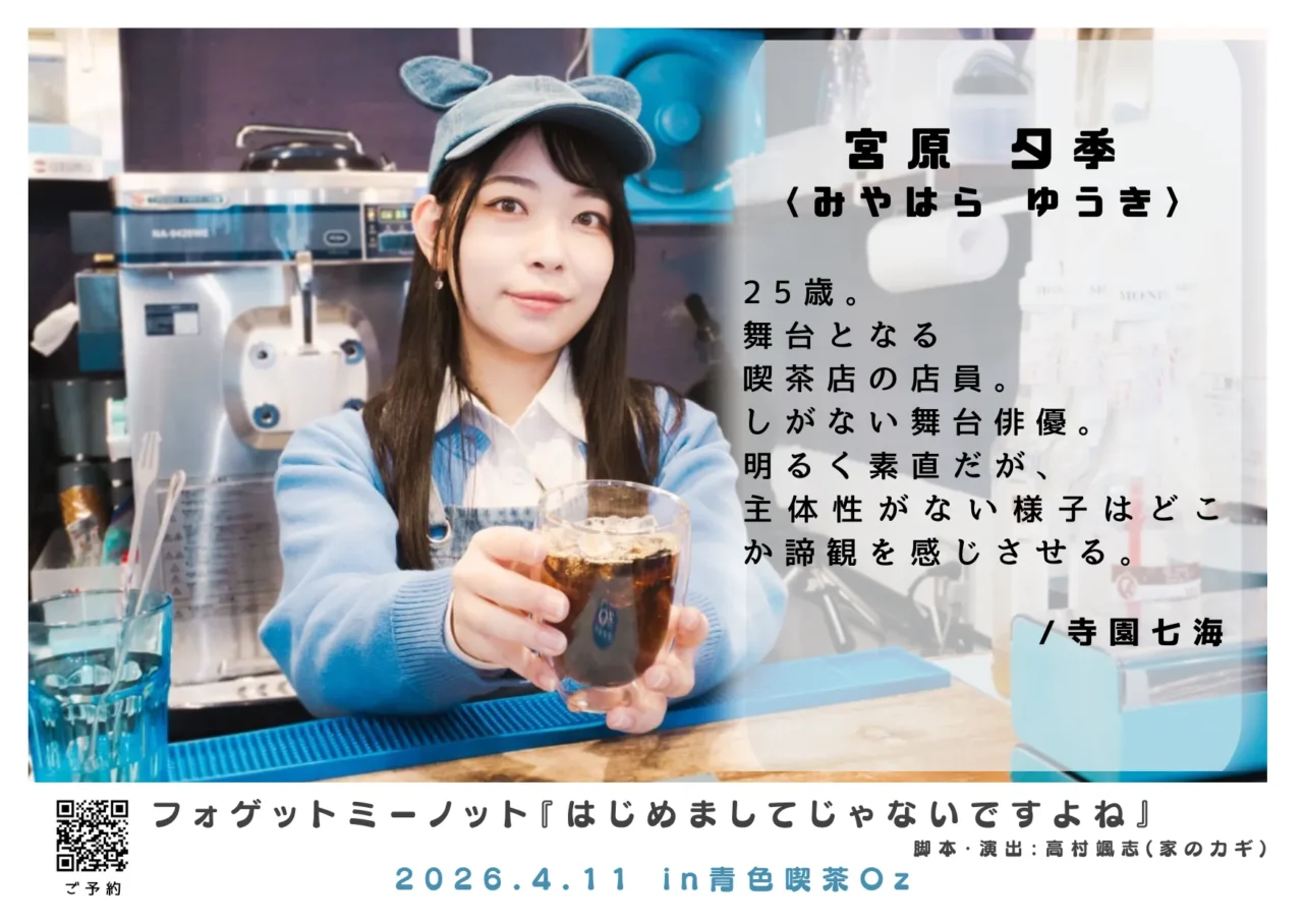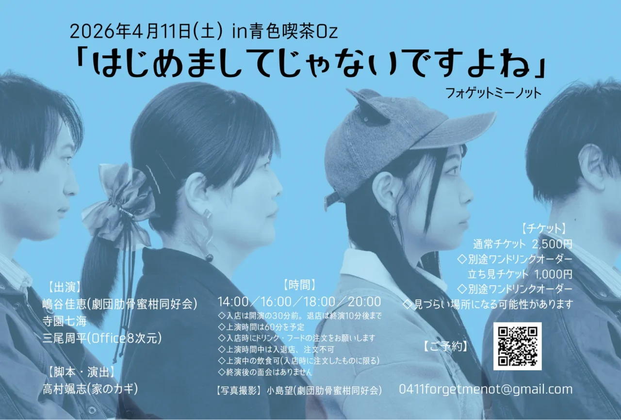 フォゲットミーノットの舞台『はじめましてじゃないですよね』が4月11日(土)に東京・中野の青色喫茶Oz@中野で上演される。
