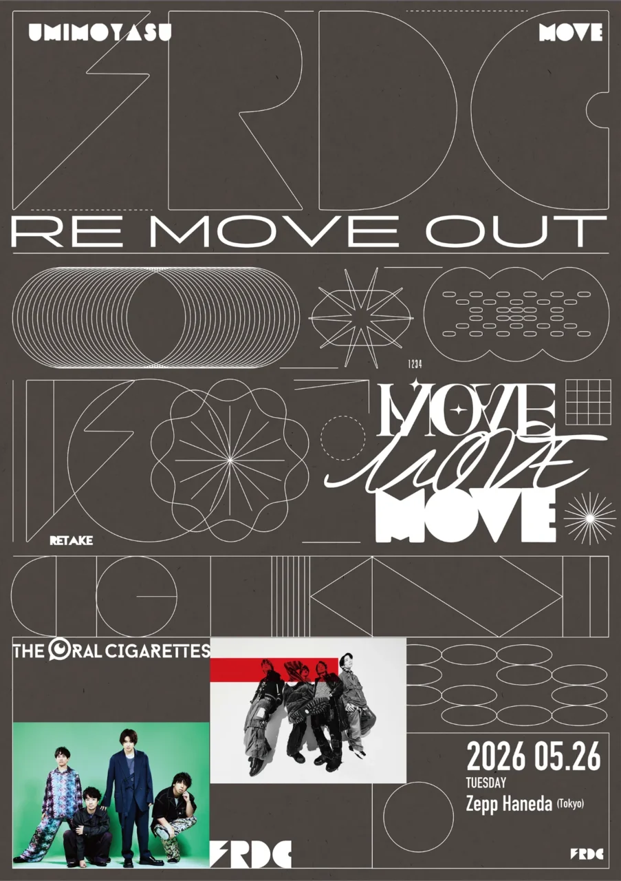 『UMIMOYASU』は、フレデリックがインディーズ時代から定期的に主催してきた対バンイベント。Zepp Haneda(TOKYO)で開催される同イベントのサブタイトルも発表となり、THE ORAL CIGARETTESが出演する5月26日(火)の公演は『UMIMOYASU 2026-2027 MOVE -RE MOVE OUT-《番外編》』、04 Limited Sazabysが出演する7月12日(日)の公演は『UMIMOYASU 2026-2027 MOVE -SUDDEN MOVE-』となる。