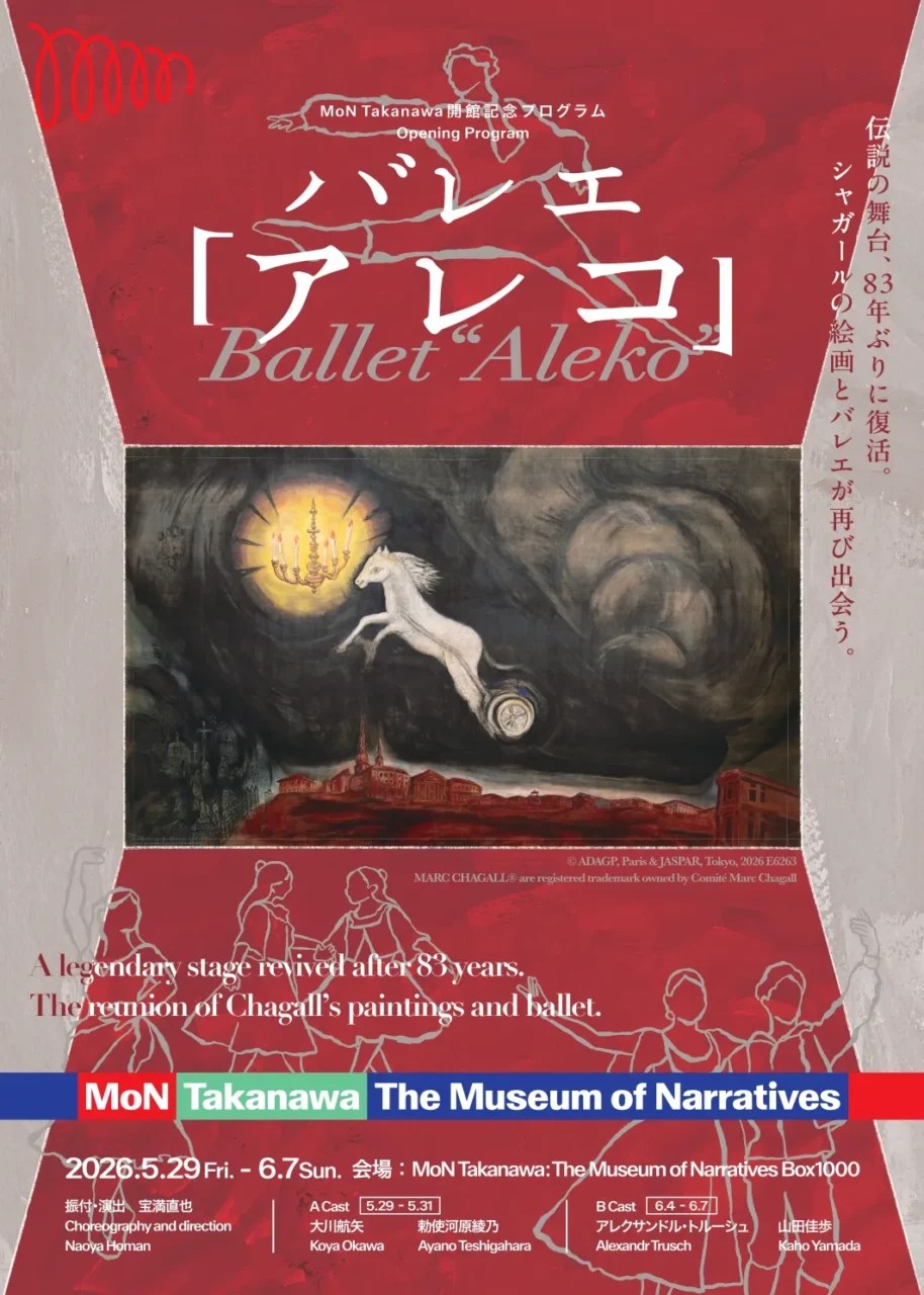 3月に開館したMoN Takanawa: The Museum of Narrativesの開館記念プログラムとして上演される、同公演。ロシアの文豪、アレクサンドル・プーシキンの詩『ジプシー』(1827年)を原作とする物語で、チャイコフスキーのピアノ三重奏曲イ短調をオーケストラ用に編曲したものが用いられ、背景画をマルク・シャガールが描いた。