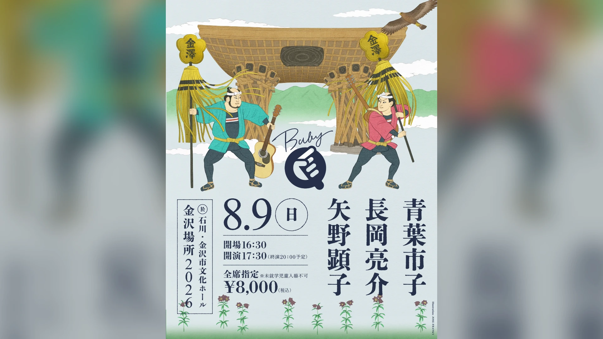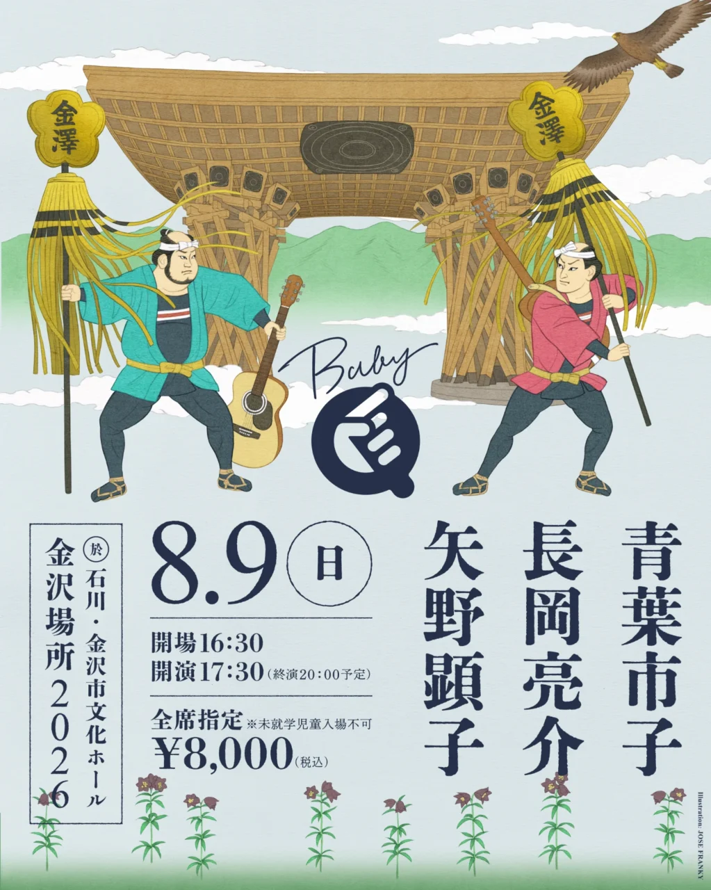 弾き語り形式の回遊イベント『BABY Q』が、8月9日(日)に石川・金沢市文化ホールにて開催される。