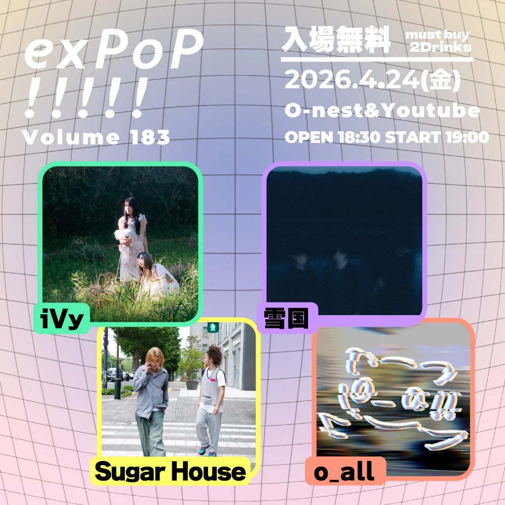 『exPoP!!!!! Vol.183』のチケットは、オフィシャルサイトで予約を受付中(要2ドリンクオーダー)。YouTubeでの生配信も行われる。