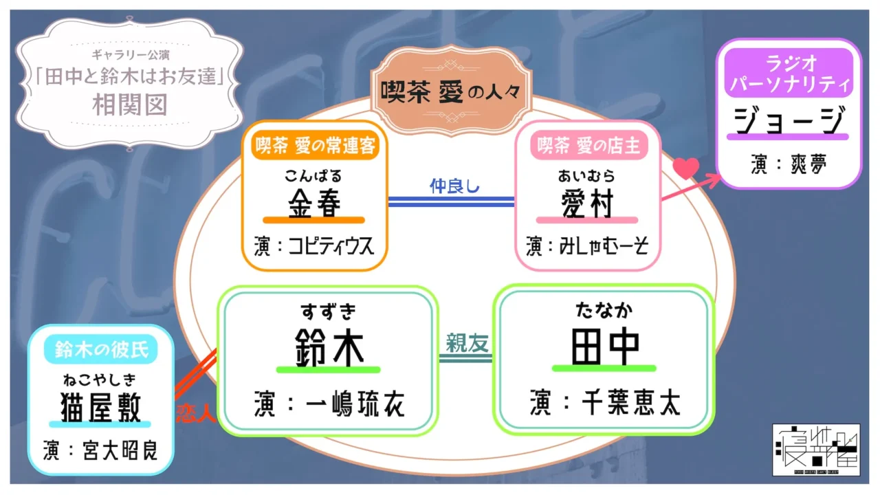 同公演は、これまで小劇場を中心に活動してきた同劇団にとって、初となるギャラリー空間での公演。都内にある喫茶店「喫茶愛」を舞台に、常連客たちの日常を描く、コメディ&ヒューマンドラマ作品となっている。