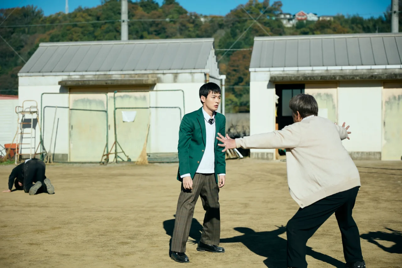 今回解禁された場面写真では、周囲の顔色を伺わず自分を貫く、優のキャラクター性が際立つカットが収められている。体育の授業で集団行動を練習する中、号令のタイミングに合わせられず注意され、不服そうな表情を見せるカットや、クラスメイトたちが洗脳されたかのように人間ピラミッドに加わっていくのを制止しようと、教師と対立するカット。さらに、集団を率いる校長と校長室で対峙し鋭い眼差しを向ける姿や、家族にも問題を抱え追い詰められていく愛を背負い、家に送り届ける様子など、様々な優の姿が収められている。
