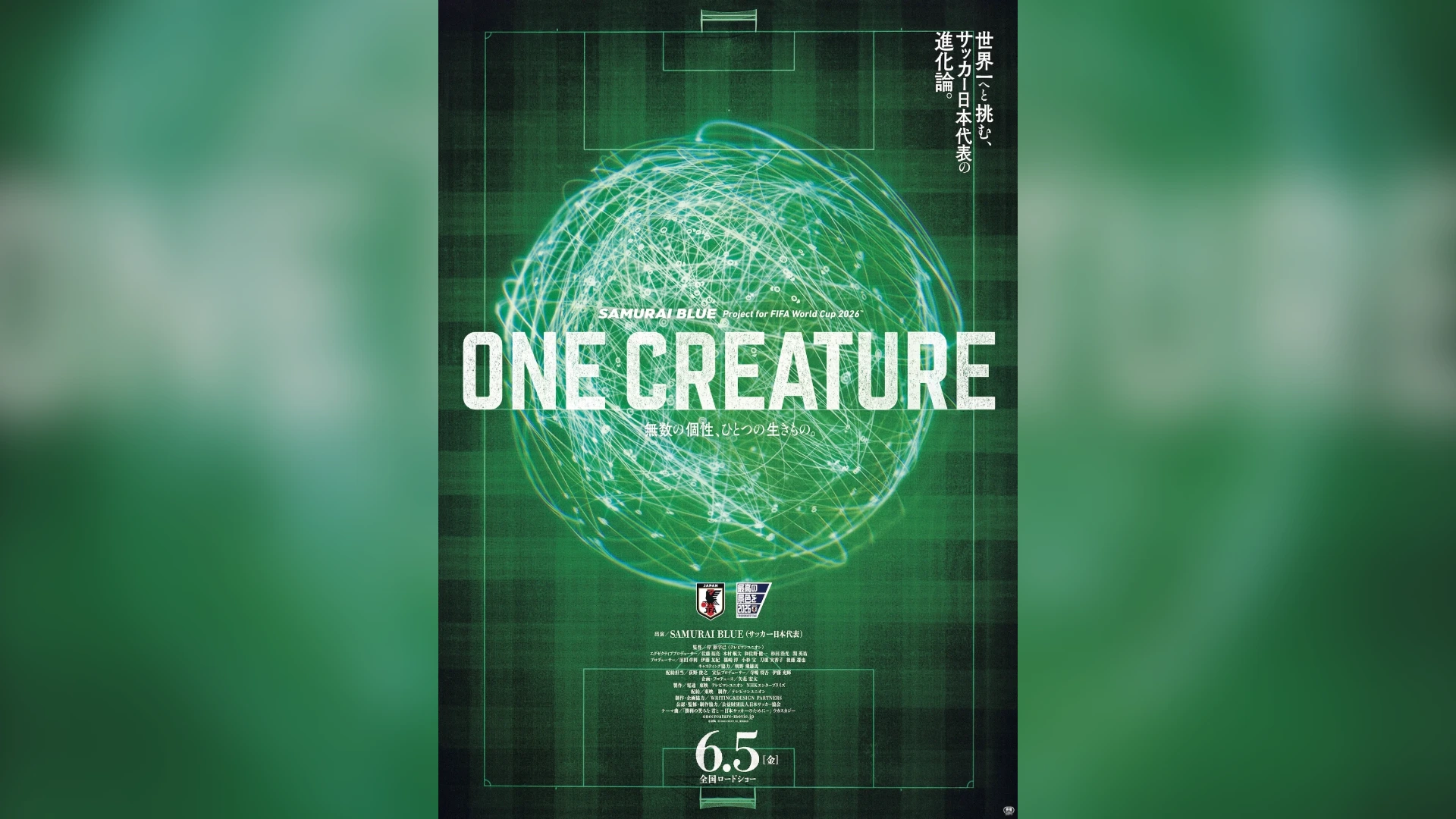 サッカー日本代表の軌跡を収めたドキュメンタリー映画『ONE CREATURE 無数の個性、ひとつの生きもの。』が、6月5日(金)より全国で公開されることが決定した。あわせて、本予告映像および本ポスタービジュアルが解禁された。