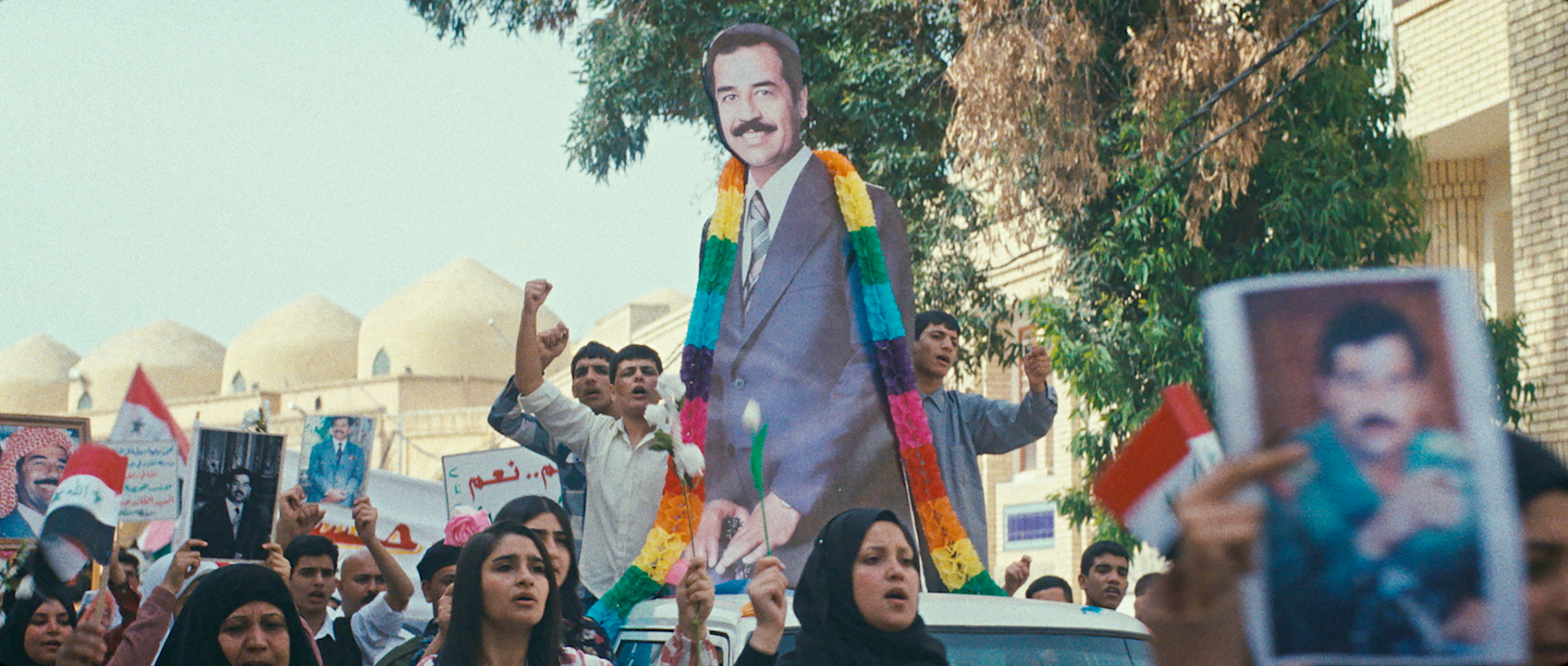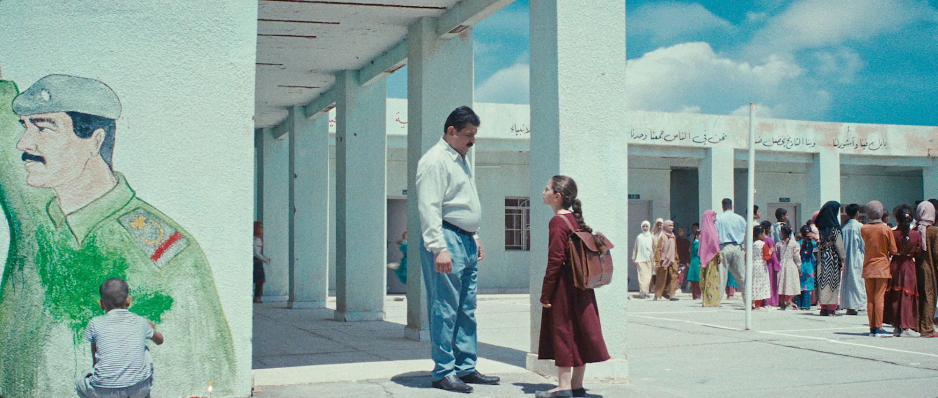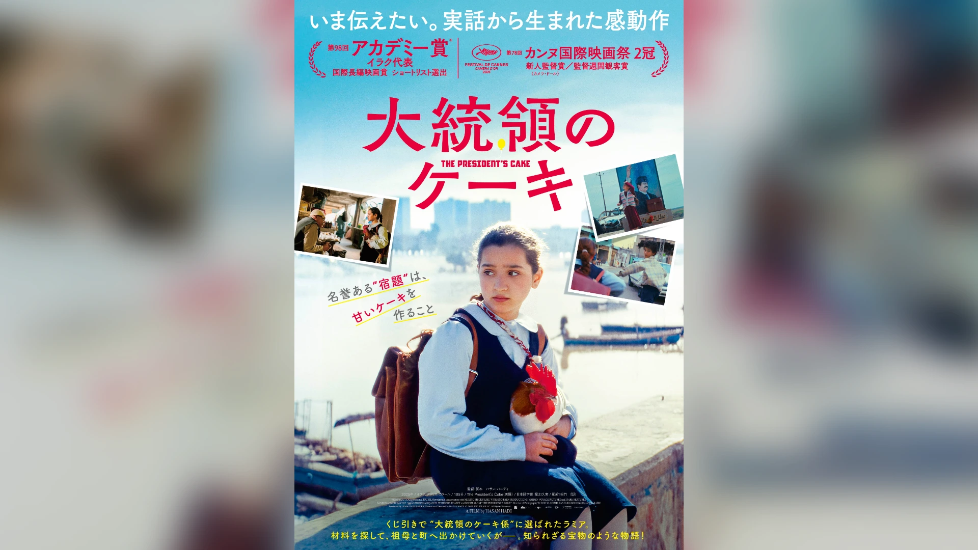 公開されたポスタービジュアルには、「友達」の雄鶏・ヒンディとともに運河沿いの橋の上に佇むラミアの姿が収められている。本予告は、小学生たちが教室の中で「フセイン大統領 万歳!」と一斉に唱える場面からスタート。国民のほとんどが日々の暮らしもままならない中、ケーキ係を決めるくじ引きでラミアが選ばれ、クラスメイトの少年・サイードと協力して材料集めに奔走する様子などが確認できる。