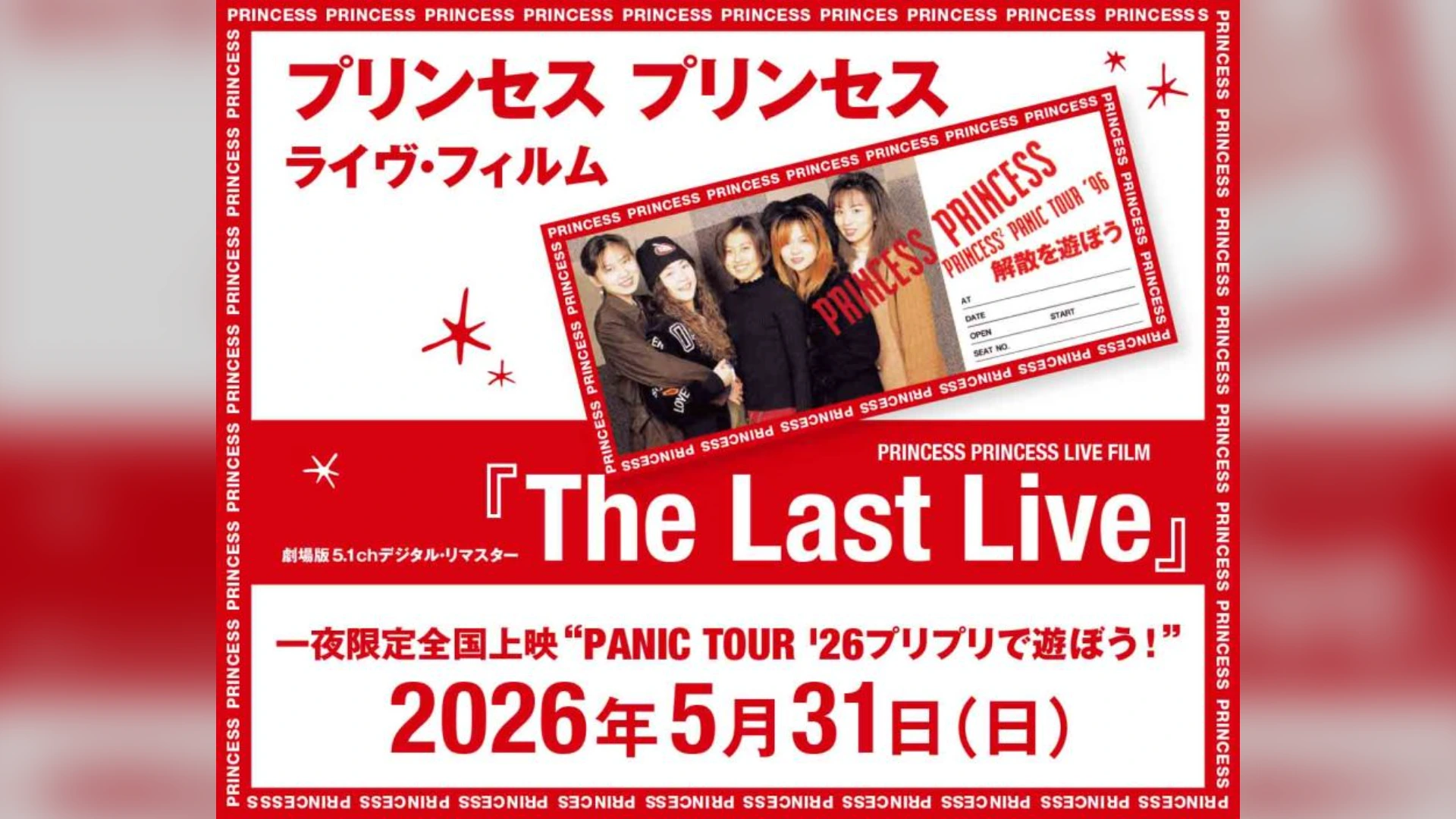 プリンセス プリンセス ライヴ・フィルム『The Last Live』(劇場版5.1chデジタル・リマスター)一夜限定全国上映“PANIC TOUR ’26プリプリで遊ぼう!”