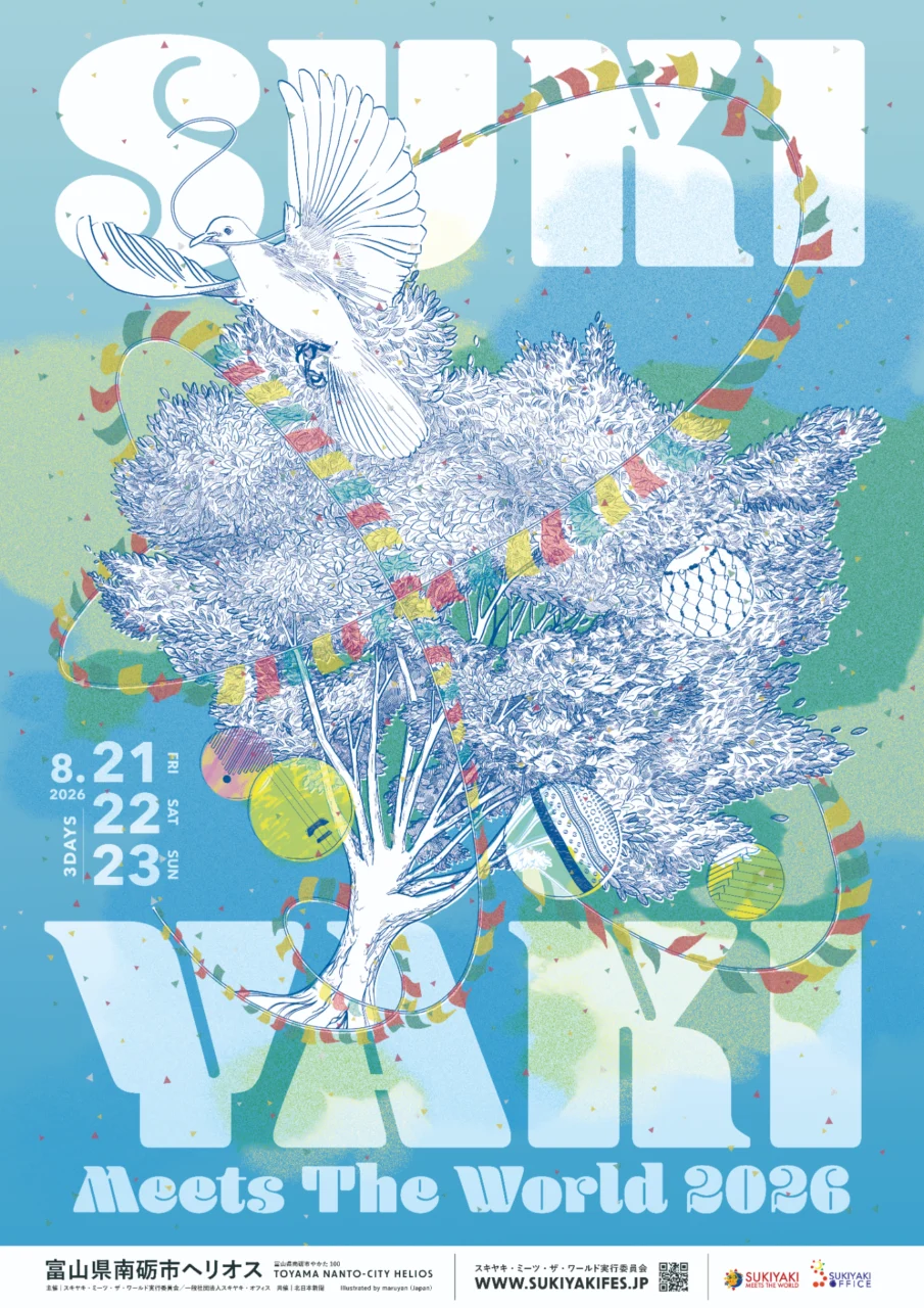 音楽フェスティバル『SUKIYAKI MEETS THE WORLD 2026』が、8月21日(金)~8月23日(日)に富山県南砺市の福野文化創造センターなどで開催される。