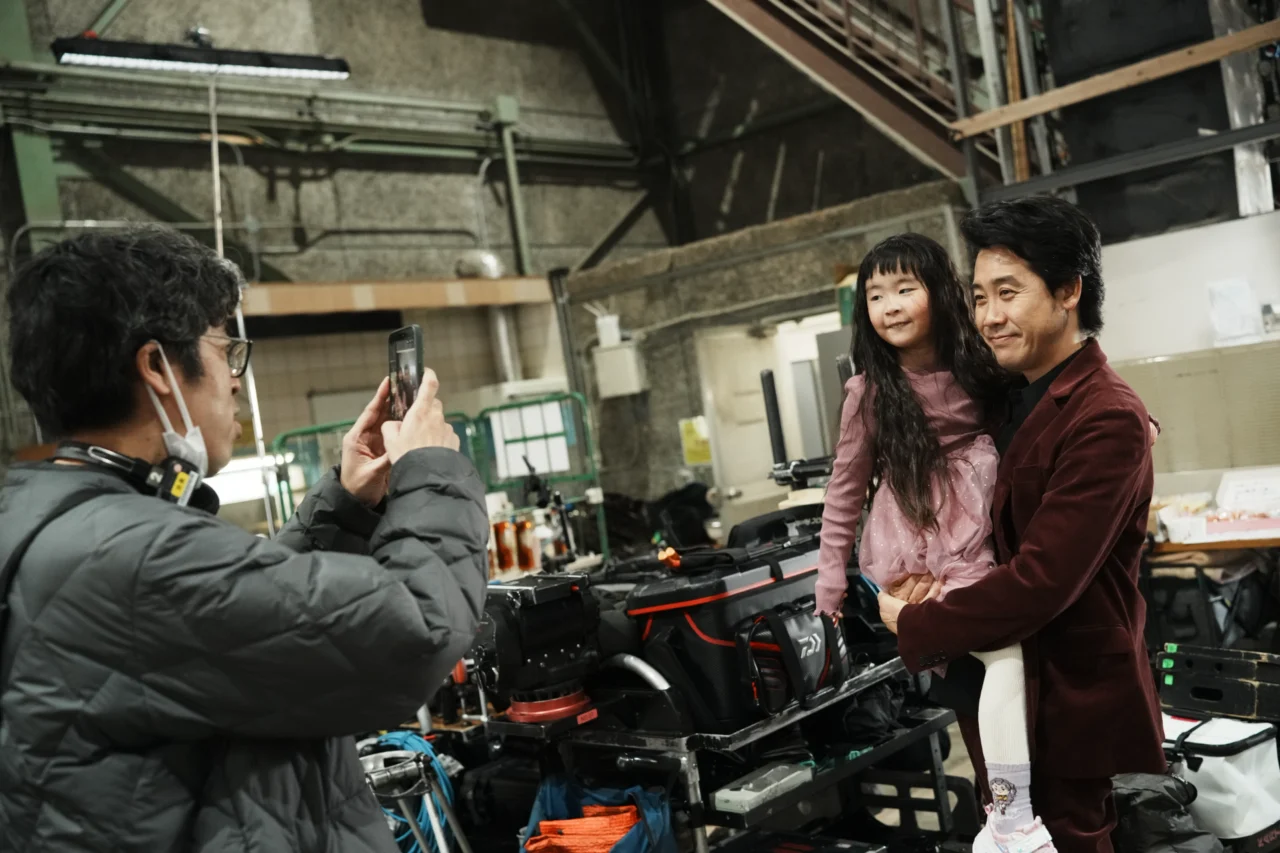 イベント当日、大泉が見学に訪れた家族に向けて「みなさん、楽しんでいってください。みなさんのためにNGを出すかもしれません」と冗談を言い笑いを誘う一幕も。昼休憩の時間には撮影部スタッフを父親に持つ5歳の女の子を抱き上げ、「懐かしいなぁ。娘が小さい頃を思い出す」と穏やかな笑顔を見せた。