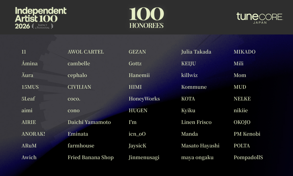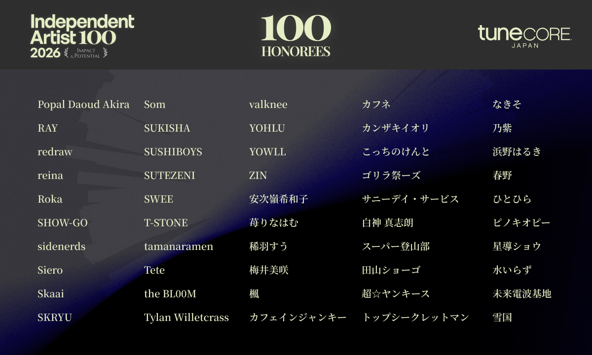 『TuneCore Japan INDEPENDENT ARTIST 100 – 2026』