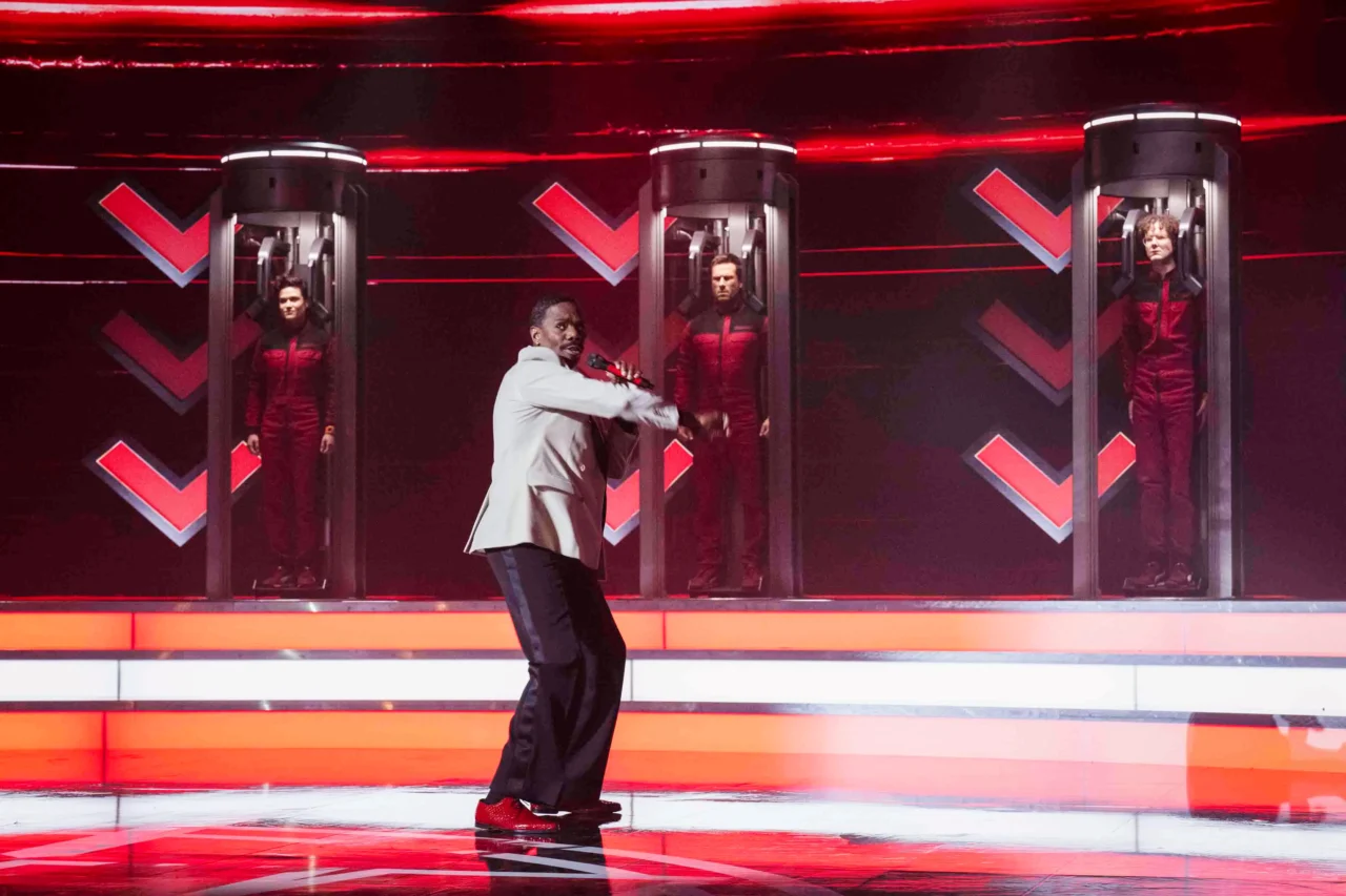 まず、先のあらすじ紹介でも述べた通り、この映画の舞台となる近未来においては、巨大メディア企業が社会全体を牛耳り、情報インフラはおろか、法執行機能を含めた国家権力をもその手中に収めている。そこでは、AIを駆使したフェイクコンテンツの生成や拡散が、当のメディア自身によって司られており、人々はそのコンテンツに流されるがまま、感情を操作されている。そして、スケープゴートたる「ランニング・マン」へ憎しみを向けることで、社会的な不満を抑圧されているのだ。