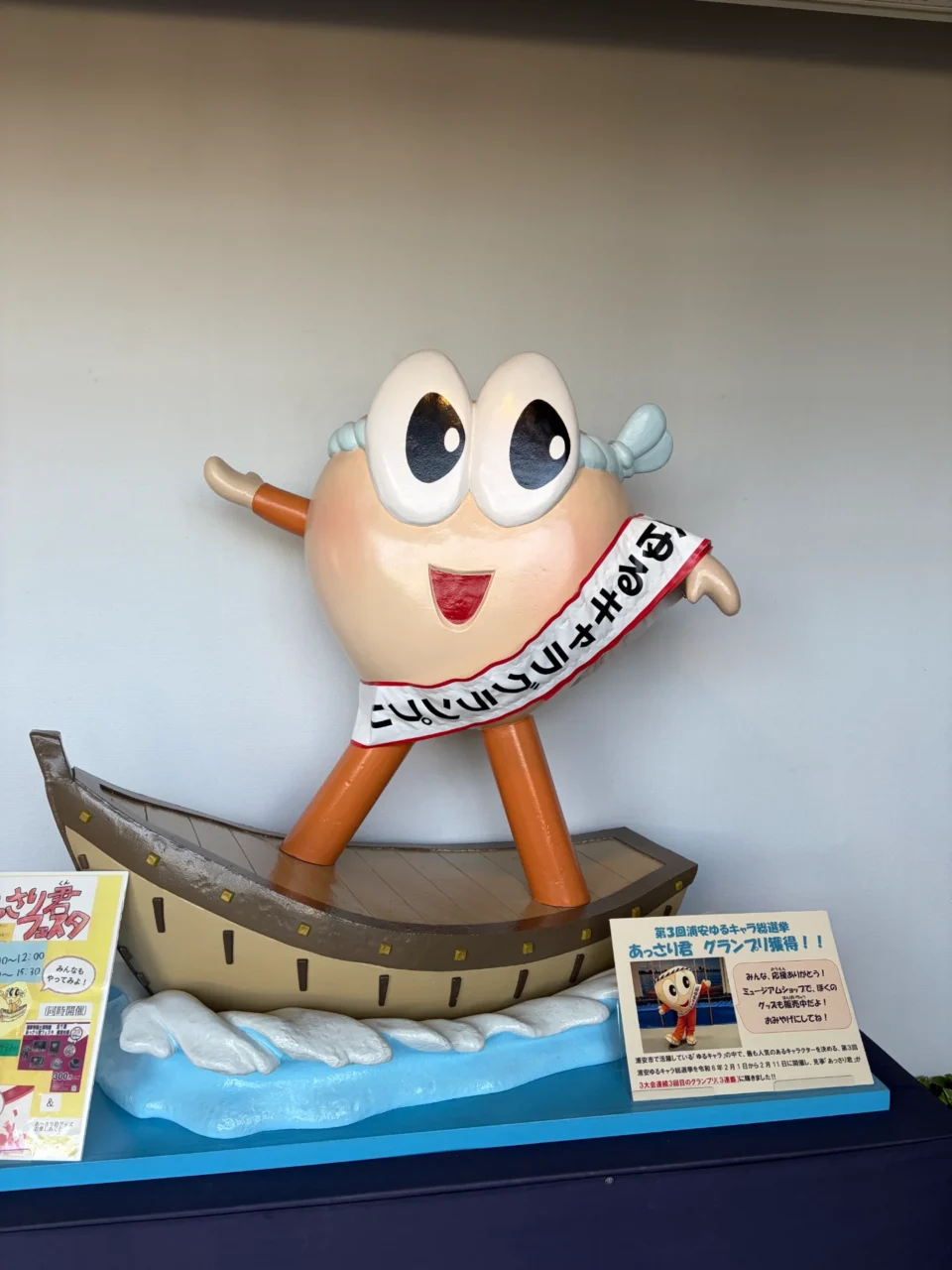 大体のことは知ってるぜ! って気持ちで入場。隣にある中央図書館でサニーデイ・サービスのCD借りて聴いたな~と17歳の自分を思い出しつつ。まずはゆるキャラ「あっさりくん」がお出迎え。かわいい。初めまして。