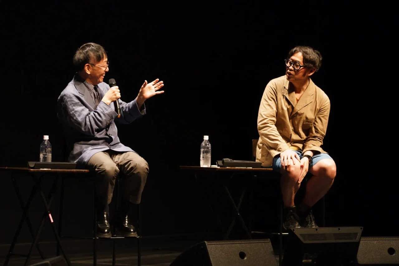 この日の話題は固い話ばかりではなく、2人の「幸福な劇場体験」について聞けたのは楽しい時間であった。野田が真っ先にあげたのは、16歳の時に日生劇場の2階席から目撃した伝説的な舞台、ピーター・ブルックの『真夏の夜の夢』(1973年)、そして清水邦夫作 / 蜷川幸雄演出の『ぼくらが非情の大河をくだる時―新宿薔薇戦争』(1972年)をアートシアター新宿文化で観た時のインパクト。続けて代々木八幡にあった青年座劇場で観た、岡部耕大演出『肥前松浦兄妹心中』(1978年)の印象も語った。ジャンプ台を逆にしたような美術を、ふんどし姿の男優たちが飛び降りながら演じる九州弁の芝居で、非常に刺激的だったとか。