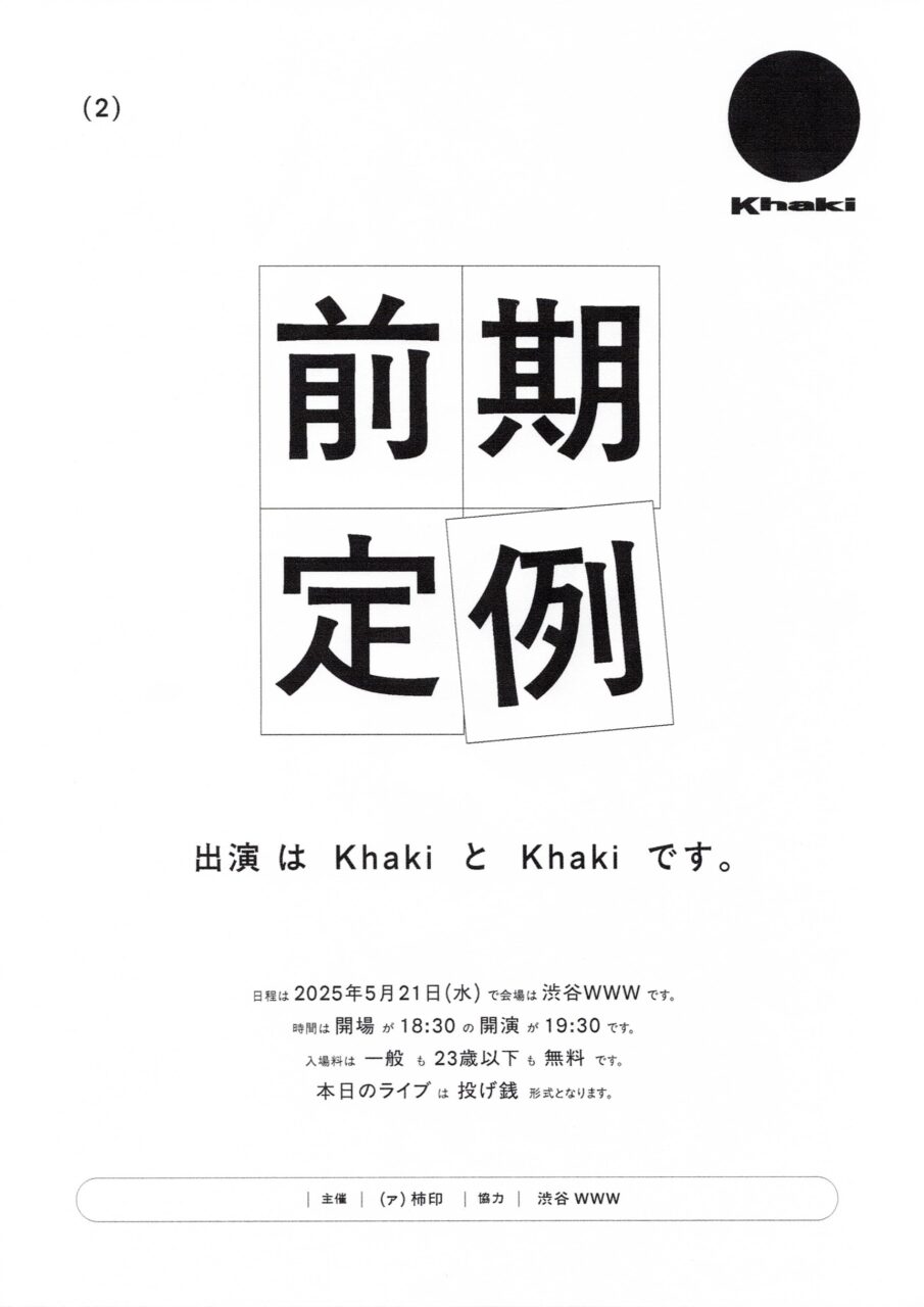 平川:『Hakko』をリリースした時の『前期定例』も、直前まではゲストを誰にしようか考えてたんですけど、「KhakiとKhakiの対バンでいいじゃん」と。今までもゲストはシークレットでやってたんで、そこも上手くハマりました。でも、側から見たら全部初めから計画してるように感じますよね。