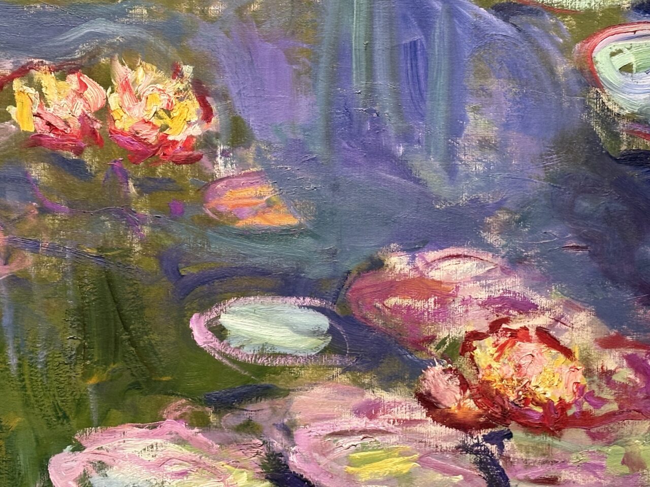 いつ何度見ても、『睡蓮』の色彩には心揺さぶられる。この作品では花のピンクが特に鮮烈なので、ぜひ近くでも観察を!