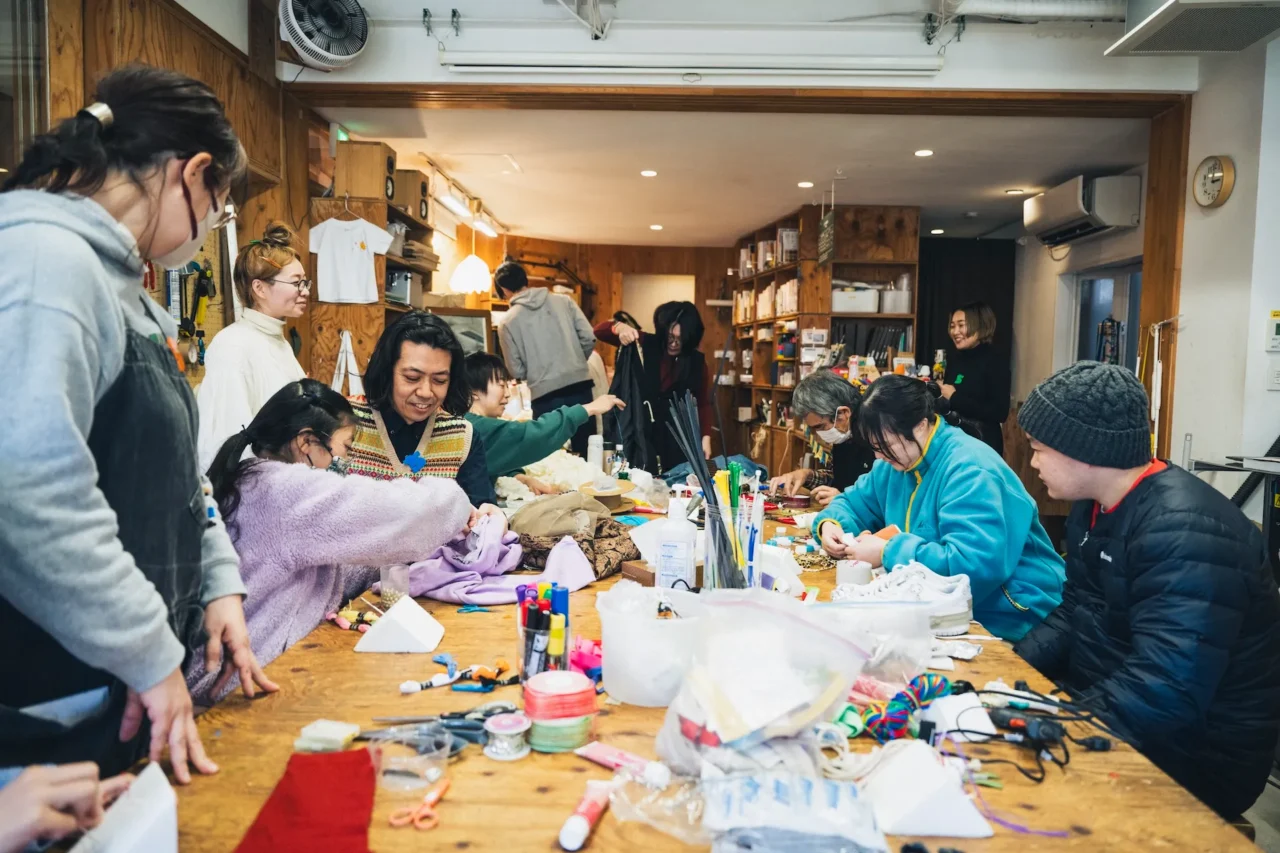 西山:西千葉にはZOZOTOWNの本社があるので、実は参加者が制作の素材としている服は、ZOZOが回収したけど販売できない古着を提供してもらったものが多いんです。また近隣の方に持ってきてもらったものもあります。さらにワークショップのサポートをしているのは、千葉市民でもある「西千葉工作室」のスタッフたち。このようにいろんなレイヤーで市民参加が起こってるんですよ。