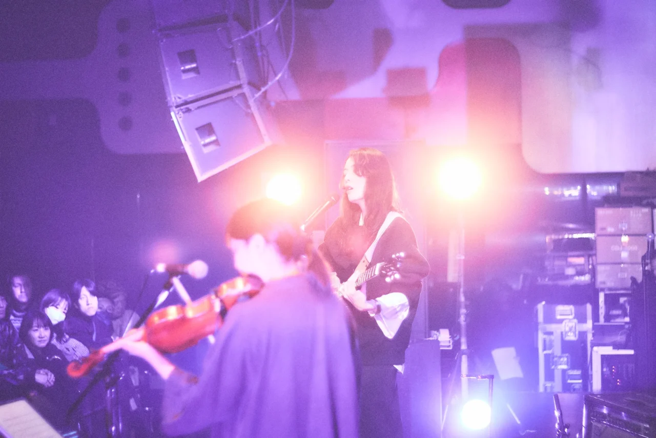 一気に大好きになったQoodowのライブを最後まで観た後は、「なるべくフルで観る」という制約を持たせず、次に行く予定のO-EASTでのライブが始まるまで他会場をうろつく。観れたのは少しの時間だったけれど、バイオリンと2人でduo MUSIC EXCHANGEのステージに立っていた阿部芙蓉美の歌声は、あまりに巨大なインパクトだった。