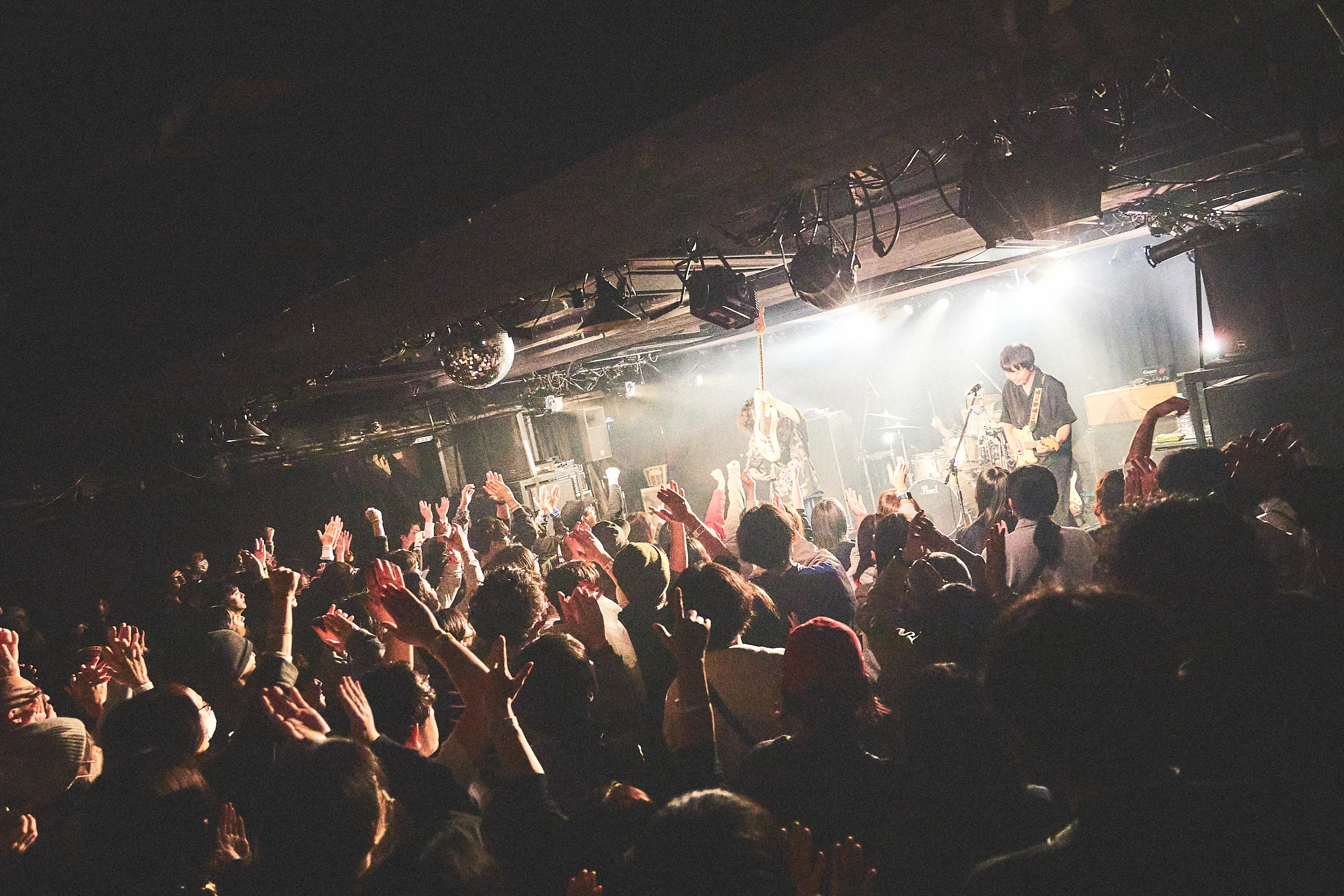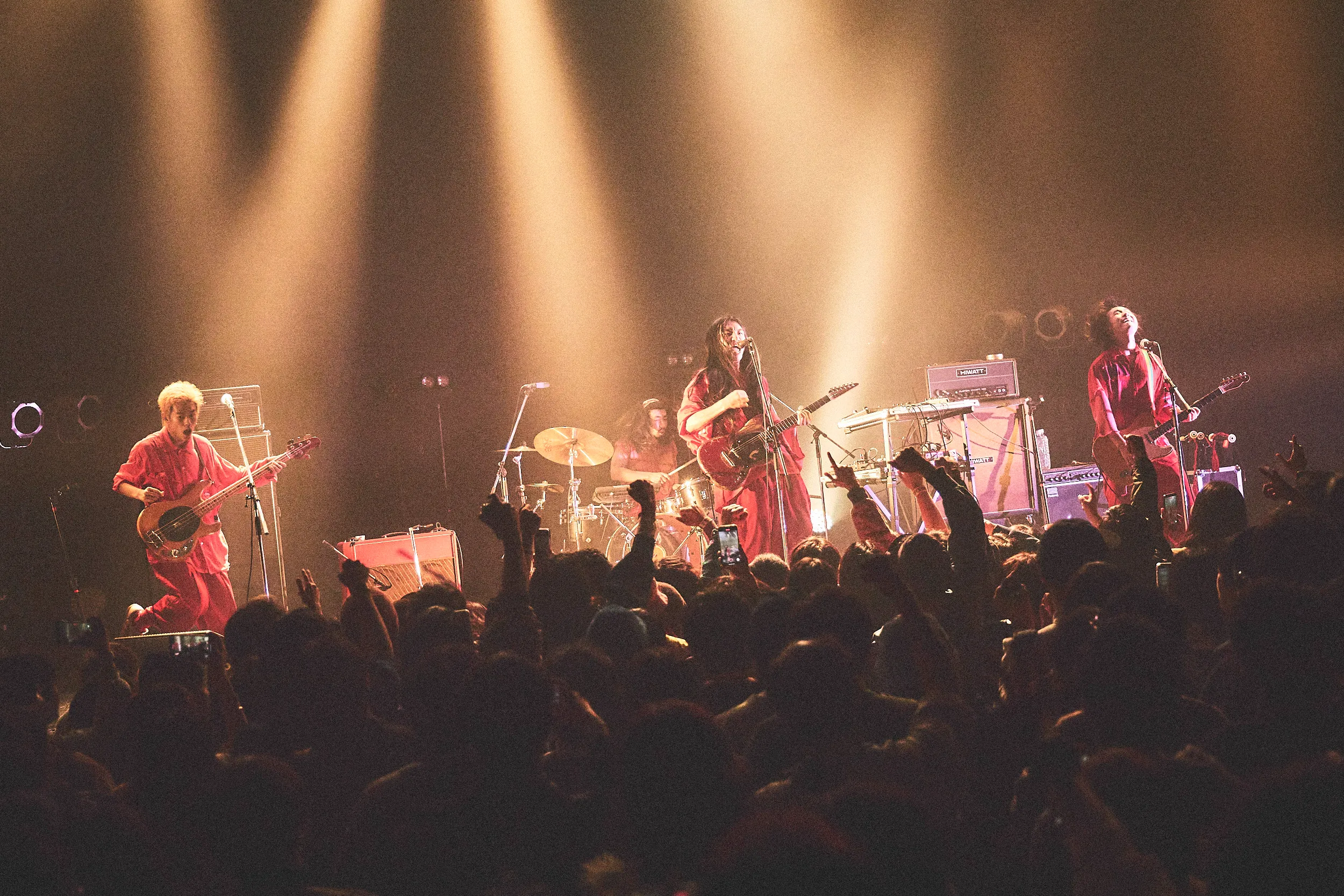 そしてO-EASTに移動し、OGRE YOU ASSHOLEのライブを観る。O-EASTのフロアに入ったときにはまだセッティング中だったが、4人の機材の間隔の近さにまず驚く。この「近さ」が、彼らのアンサンブルにとって大切な要素の一つひとつなのかもしれない。そしてひとたびライブが始まれば、演奏に完全に惹き込まれた。「長いトンネルを抜けると雪国であった」とでもいうような、曲の始まりからぐーっと深く没入していき、ハッと気が付いたらとんでもない景色が広がっている感覚。気づけば自分も踊っているし、周りの人たちもめちゃめちゃ踊っている。